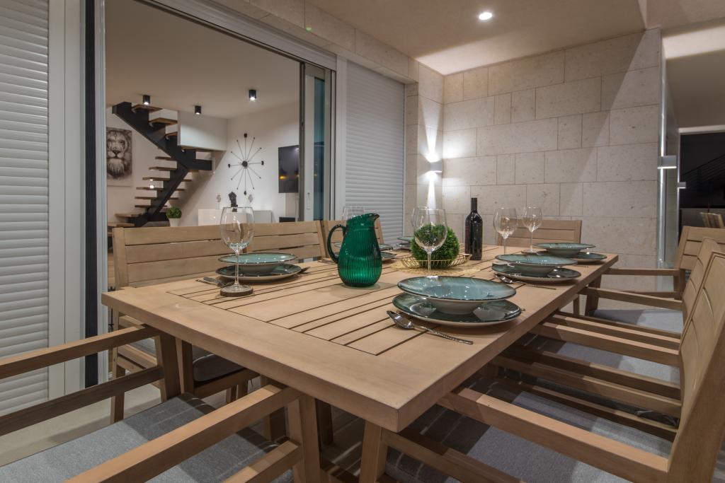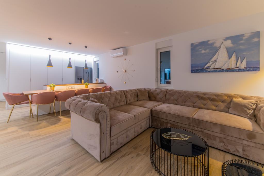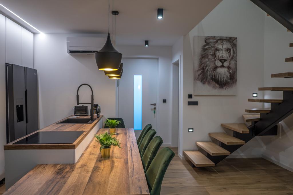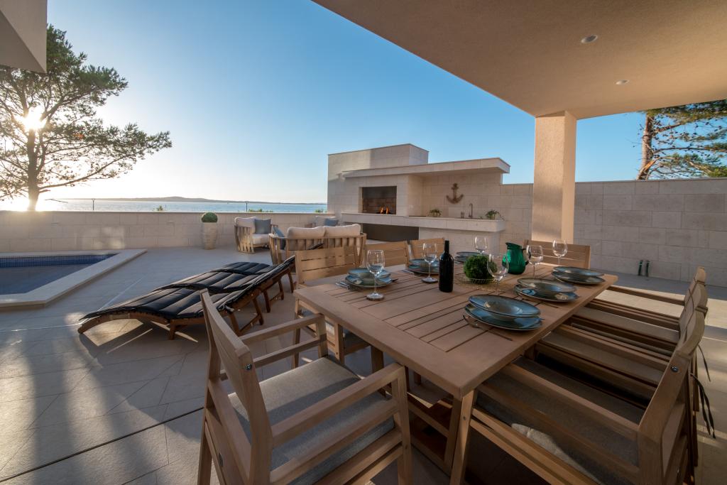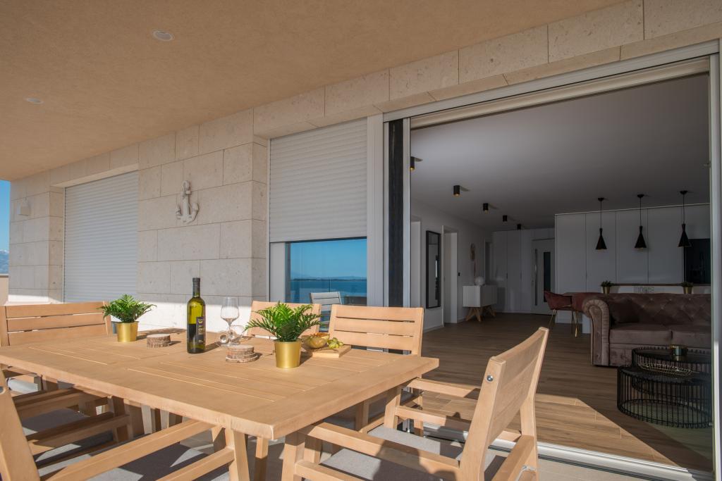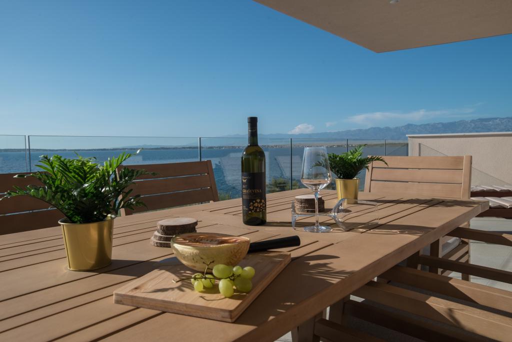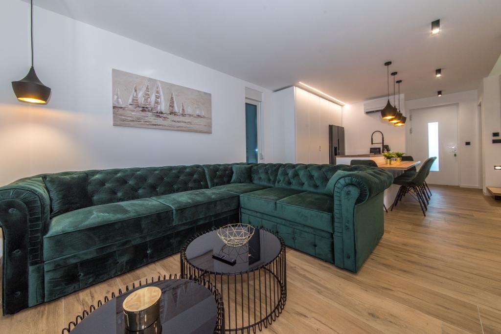 Apartamenty Zitab Luxury znajdują się zaledwie 30 metrów od morza w małej i spokojnej miejscowości Privlaka w regionie Zadar. Nowo wybudowany obiekt z trzema luksusowymi apartamentami oferuje idealne i relaksujące wakacje w pięknie urządzonym otoczeniu z basenem. Idyllą tego obiektu mogą cieszyć się rodziny z dziećmi, a także młode i starsze pary. Lokalizacja samego obiektu jest dużym plusem, ponieważ odległość do innych obiektów takich jak sklepy, restauracje, apteki jest bliska (w promieniu max. 10 minut spacerkiem). Krótko mówiąc, oprócz przestronnych noclegów, na gości czekają wygodne duże łóżka skrzyniowe, klimatyzowane sypialnie, w których każdy pokój ma własną klimatyzację i smart TV, duże i pojemne szafy. Dodatkowo przyciemniane szyby, namagnesowane drzwi wewnętrzne, duża dwuskrzydłowa lodówka z wodą i kostkarką do lodu oraz przestronny i luksusowy zestaw w salonie. Wychodząc na swój taras, popijając kawę nad morzem lub przy basenie, czy to na leżaku, czy na naszej luksusowej sofie, spędzisz niezapomniane chwile