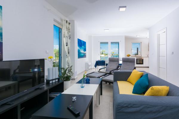 Te wiersz domy znajdują się w pobliżu promenady nad morzem i betonowej plaży, w pobliżu piaszczystej plaży, która jest idealnym miejscem dla rodzin z małymi dziećmi. Domy są w pełni wyposażone we wszystkie niezbędne do przyjemnego wypoczynku, mają swój własny basen i taras z grillem, aw każdym znajduje się piękny widok na morze i pobliskie wyspy. mogą być one łączone ze sobą pomieścić rodzin w wielu domach w tym samym czasie. Miasto obfituje Privlaka długie, płytkie, piaszczyste plaże, które są idealnym miejscem na rodzinne wakacje. Rodziny z małymi dziećmi będą mieli czyste morze i gry na piasku, a czyste powietrze i lecznicze czarne błoto w Mostina korzystnego traktowania reumatyzm i artretyzm. Szczególnym przeżyciem jest opalanie się na długie, pięknie ułożone promenadzie, która otacza niemal całe miasto. Stąd można podziwiać piękne zachody słońca.