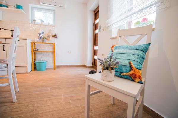 Liczba osób: 6 2; Sypialnie: 3; Łazienki: 3; Dom jest wynajmowane w całości, idealny na rodzinne wakacje i relaks. Znajduje się on w starym i spokojnej części Privlaka, z widokiem na morze. Plaże są długie i piaszczyste z ciepłym morzu. Dom jest dobrze i luksusowe umeblowanie. Na parterze znajduje się kuchnia, pokój dzienny z rozkładaną sofą dla 2 osób, jadalni, sypialni oraz łazienki z jacuzzi i dużym tarasem. Na piętrze są dwie sypialnie. Każdy pokój wyposażony jest w klimatyzację, łazienkę, TV, inteligentnej i taras z widokiem na morze. Nadaje się do świąt poza miesiącach letnich, jak to ma w ogrzewanie podłogowe. Obiekt oferuje bezpłatny bezprzewodowy dostęp do Internetu i telewizję satelitarną.