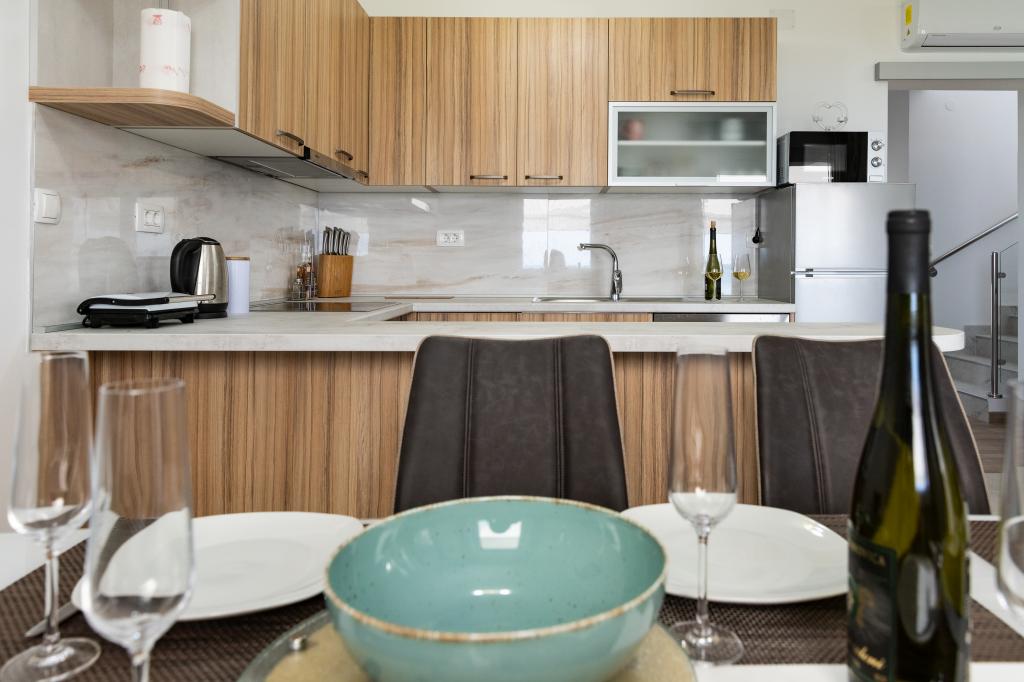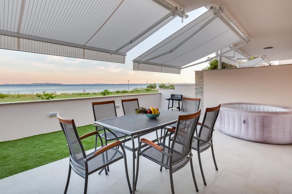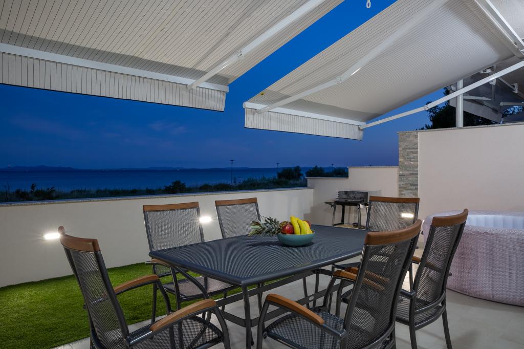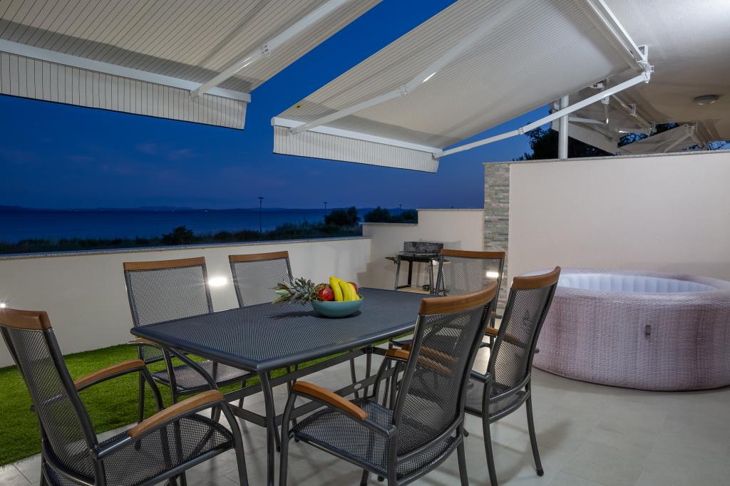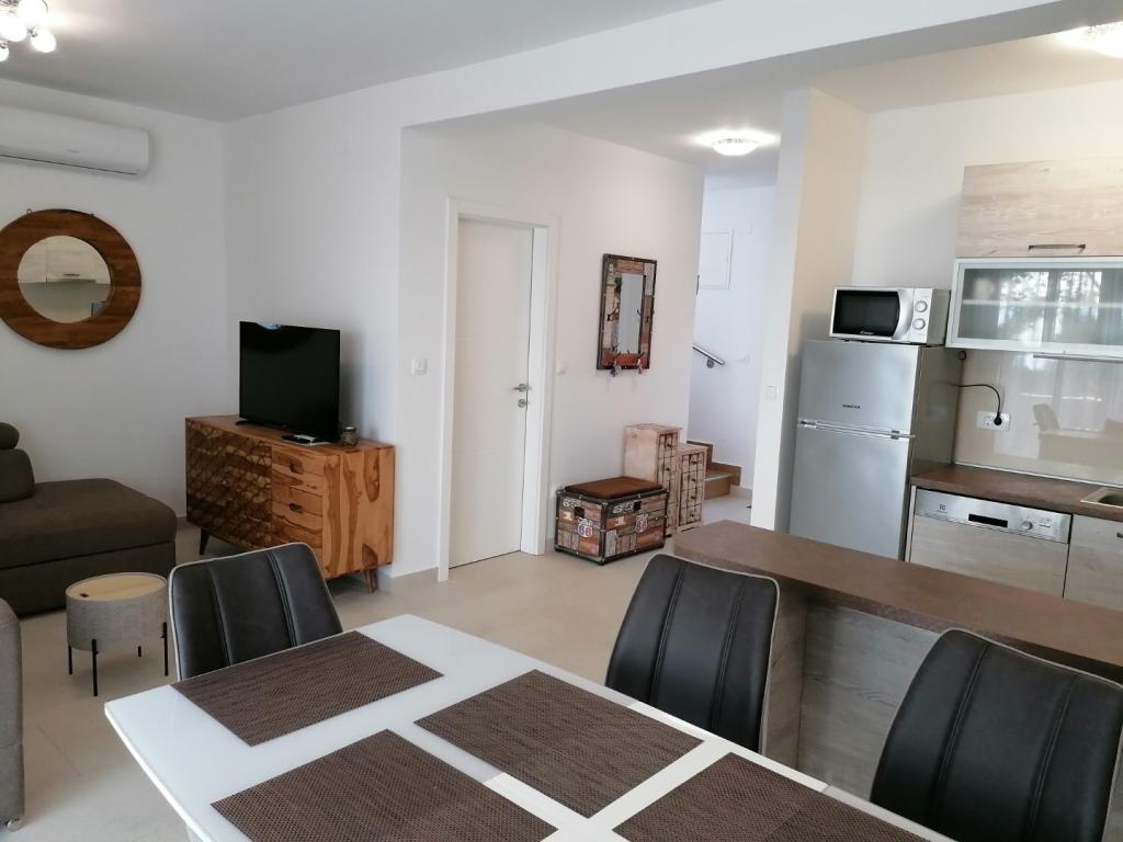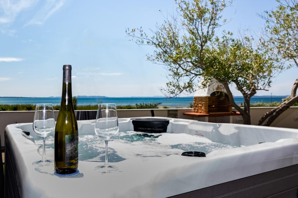 Nowy budynek (trzy domy w rzędzie), z osobnymi dziedzińcami, wyjątkowe położenie wzdłuż piaszczystej plaży w zatoce Jazić, wysoki standard wystroju i komfortu; z basenami z hydromasażem na podwórku (jeśli nie lubicie 30 metrów do morza lub lubicie bąbelki ...) ... to wszystko po to, aby na chwilę poprawić sobie rzeczywistość :-) Pozwól dzieciom biegać po okolicy podwórko bez obaw i witamy w odpowiednim miejscu spoczynku...