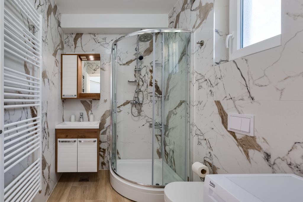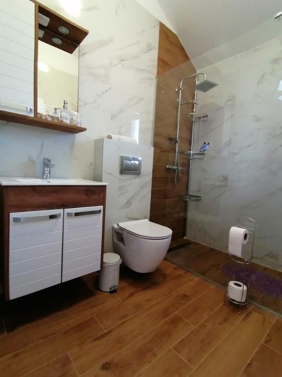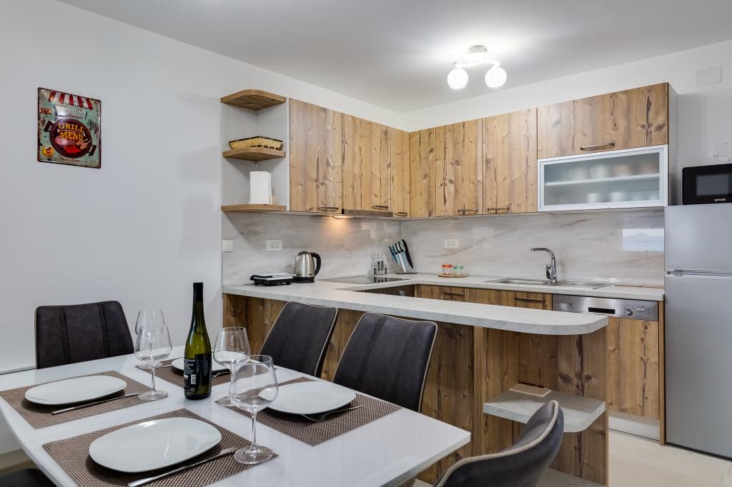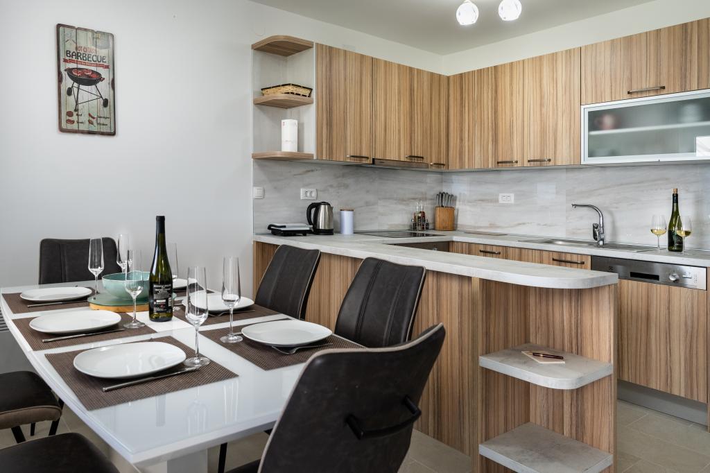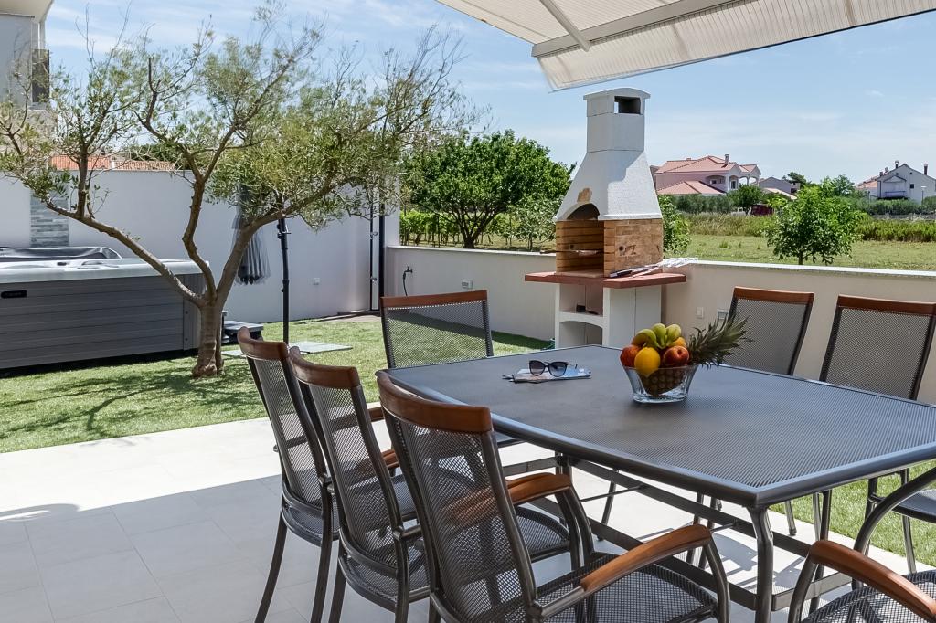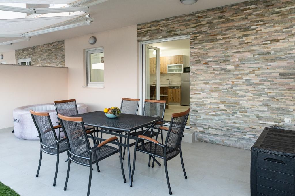 Nowy budynek (trzy domy w rzędzie), z osobnymi dziedzińcami, wyjątkowe położenie wzdłuż piaszczystej plaży w zatoce Jazić, wysoki standard wystroju i komfortu; z basenami z hydromasażem na podwórku (jeśli nie lubicie 30 metrów do morza lub lubicie bąbelki ...) ... to wszystko po to, aby na chwilę poprawić sobie rzeczywistość :-) Pozwól dzieciom biegać po okolicy podwórko bez obaw i witamy w odpowiednim miejscu spoczynku...