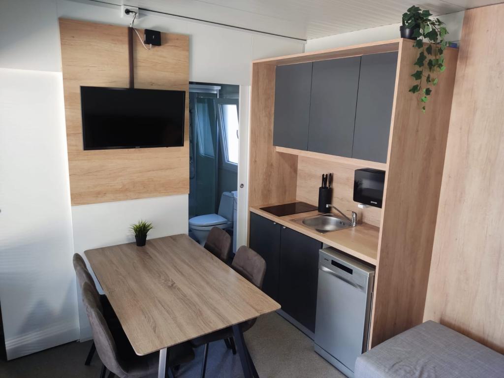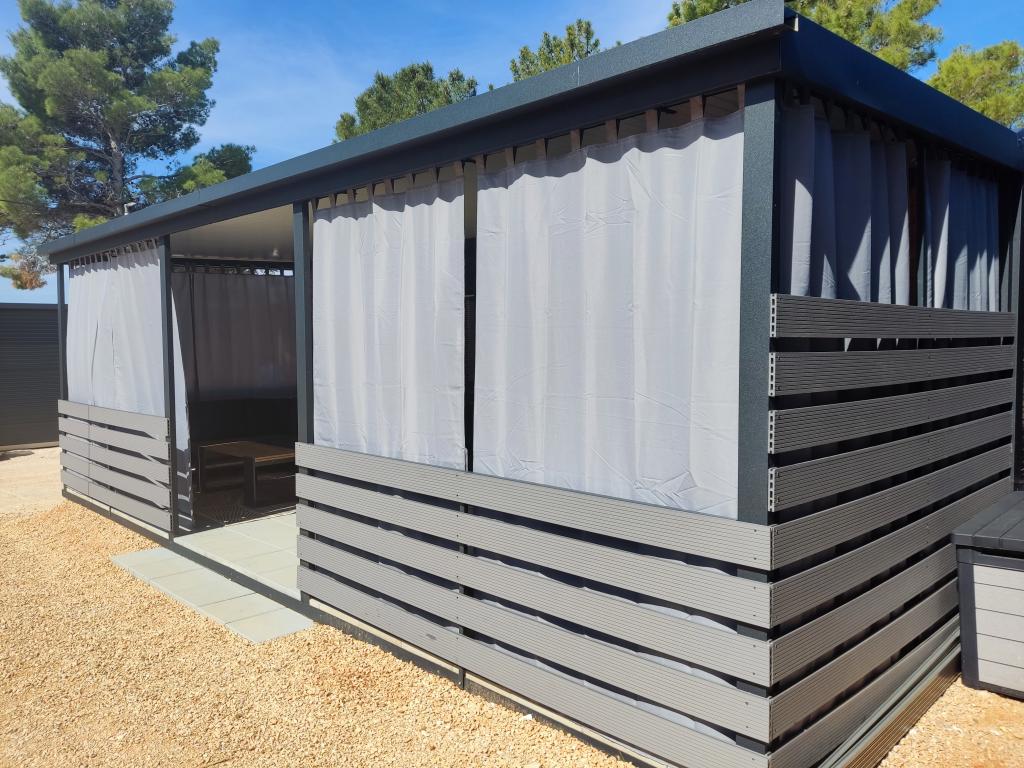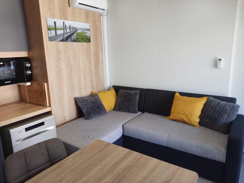 Domki mobilne, kemping Dalmacija, domki Privlaka dla 4 i 6 osób. Odległość od plaży 50–150 m. W pobliżu Nin – 4 km i Zadar – 20 km. Zobacz na Mapach Google: https://maps.app.goo.gl/bk4oYG2X6VjNJgyf8?g_st=ac Co czeka na Ciebie w domkach? ️ W pełni wyposażone i klimatyzowane ️ Smart TV (Netflix, IPTV) + Wi-Fi ️ Zmywarka, grill, prywatny parking