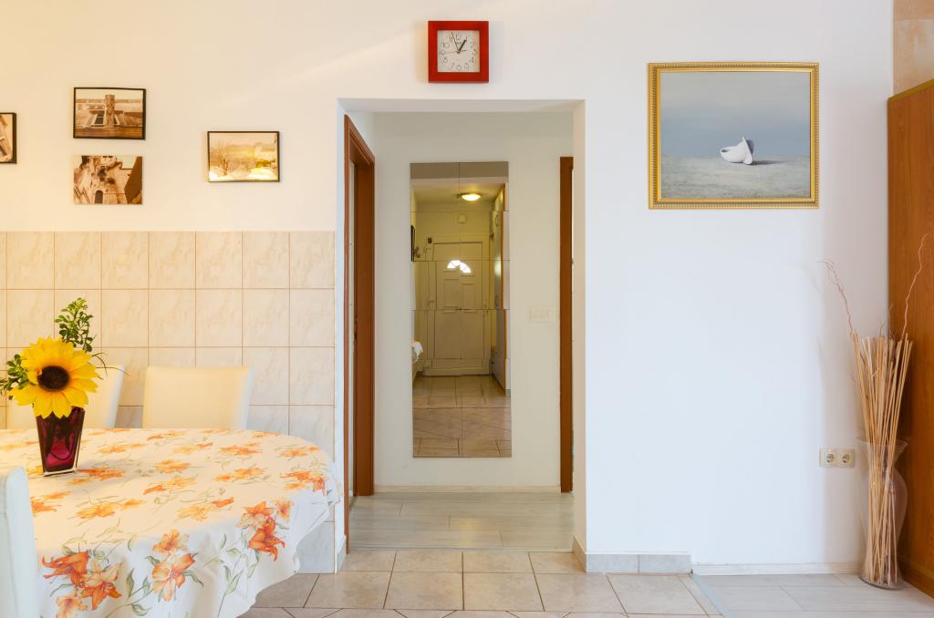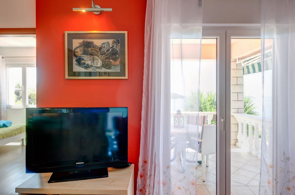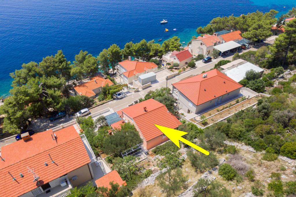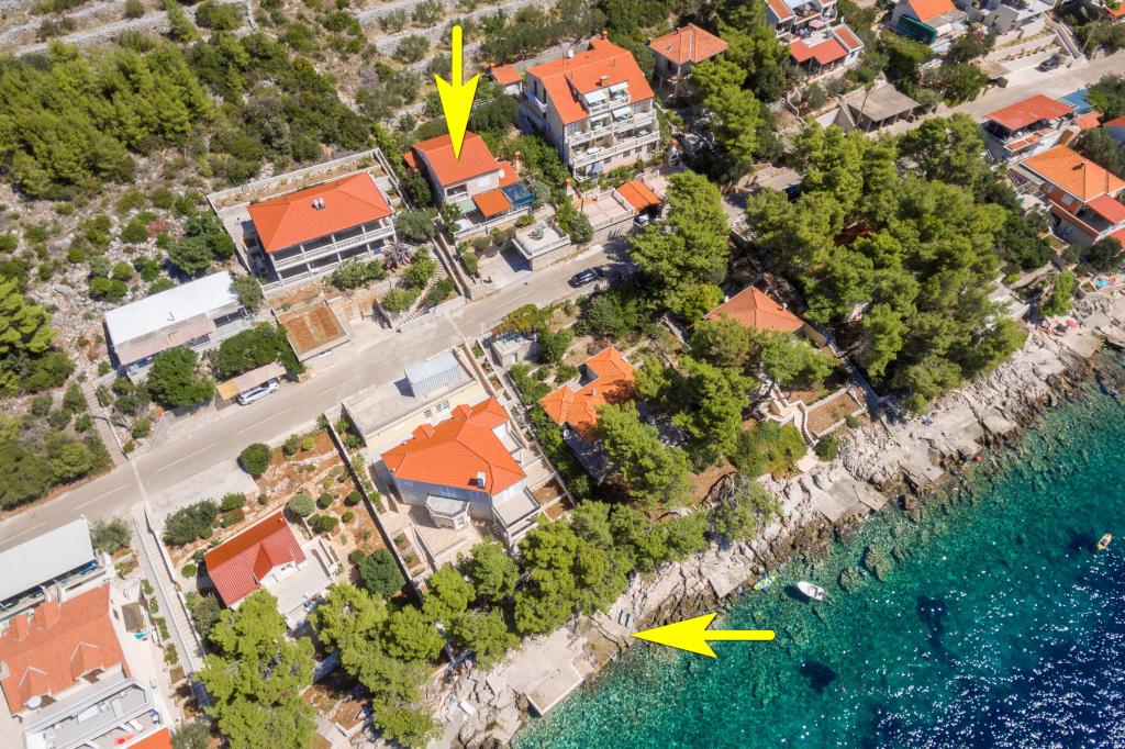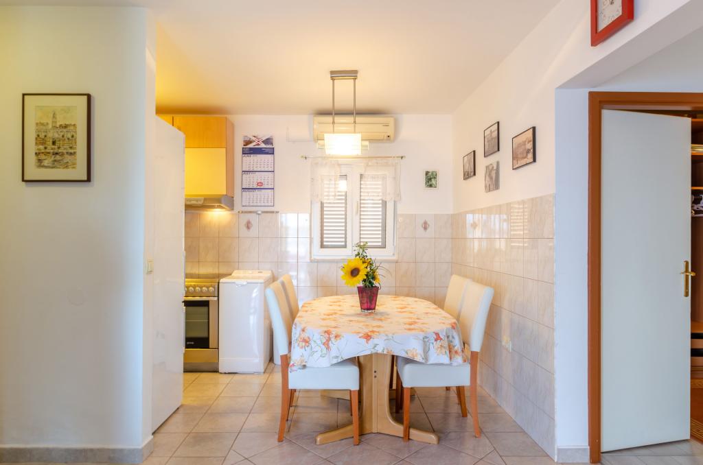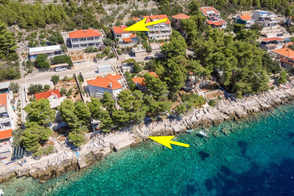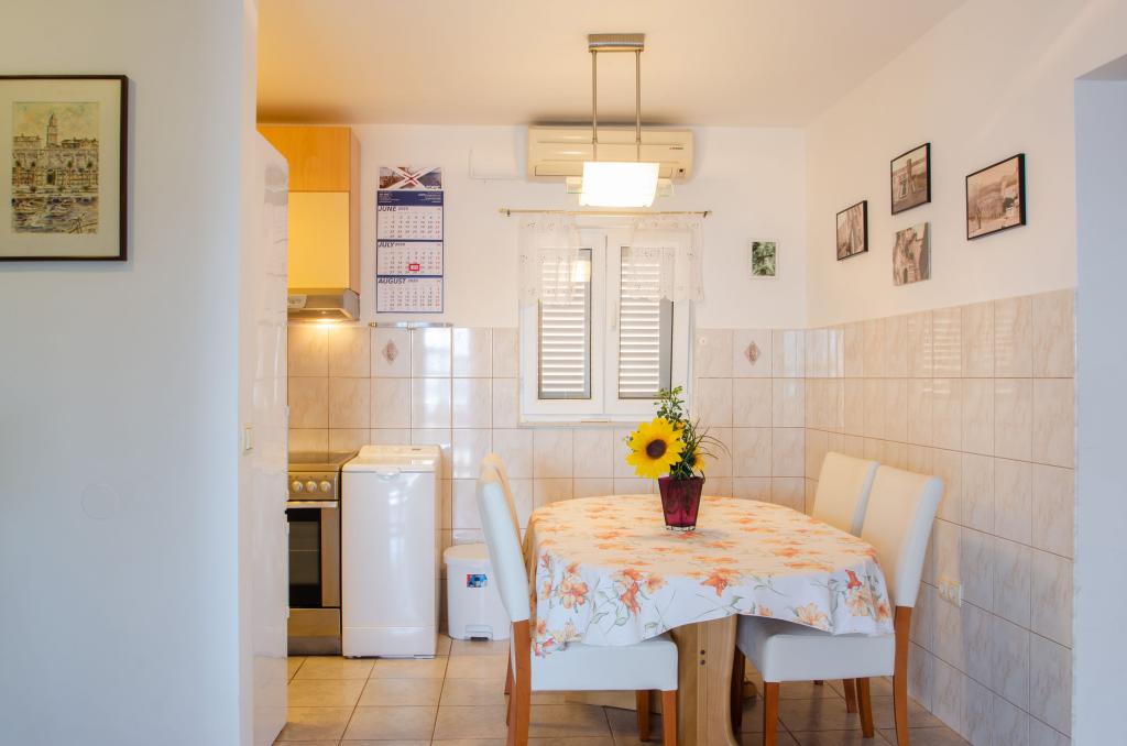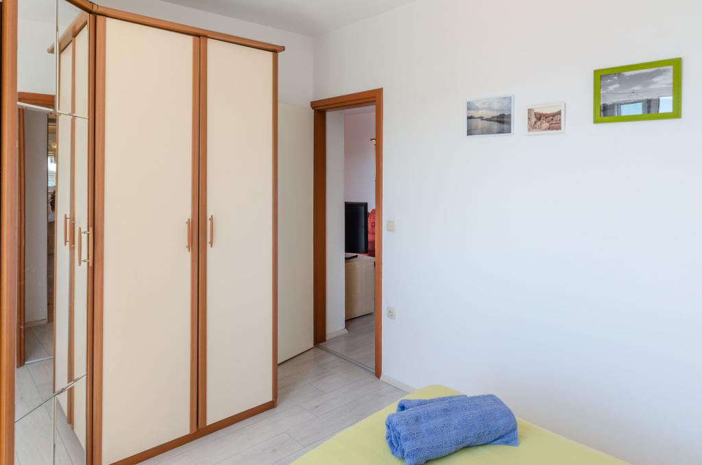 Mieszkanie w rodzinnym domu, orientacja północ-południe, 30m od morza, położone na pierwszym piętrze, składa się z dwóch sypialni, salonu/jadalni z kuchnią, małej garderoby, łazienki/toalety oraz tarasu z widokiem na morze od 12m2 W pobliżu apartamentu znajduje się sklep spożywczy, a do centrum Prizby można dojść pieszo ok. 400m do wszystkich innych obiektów.
