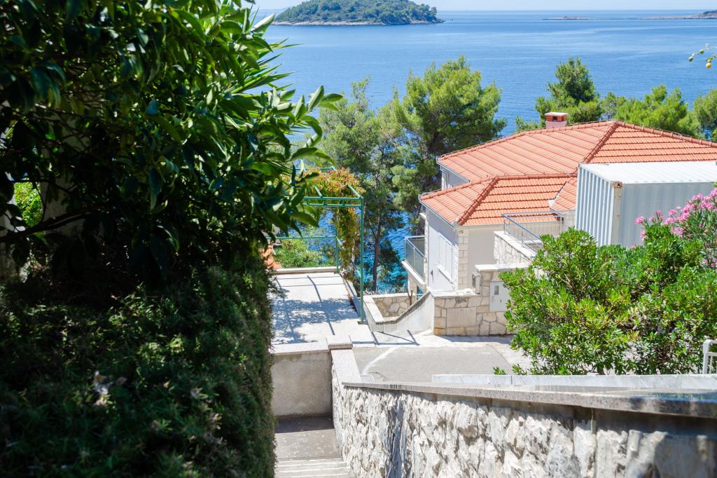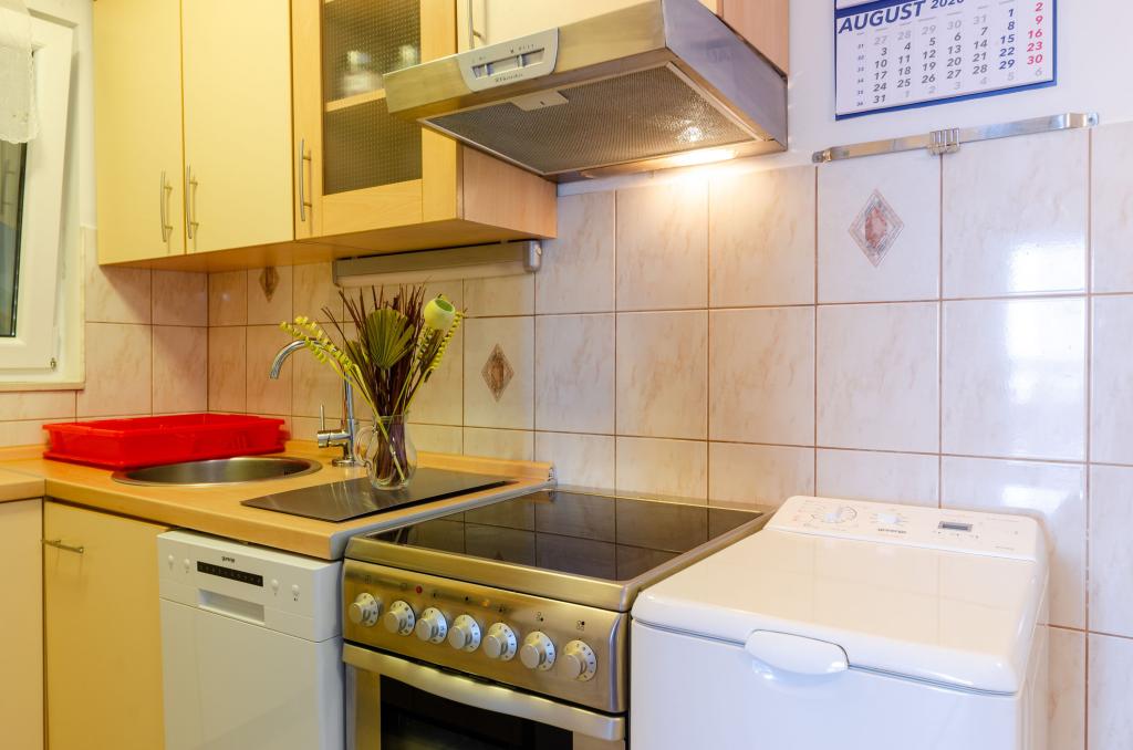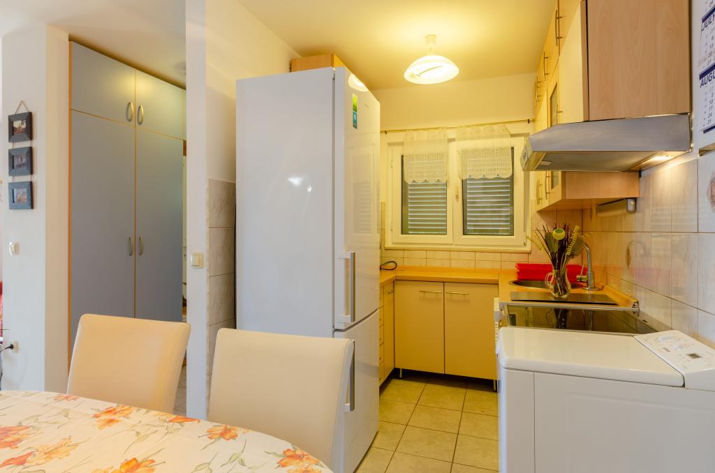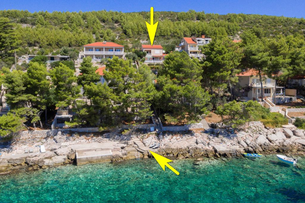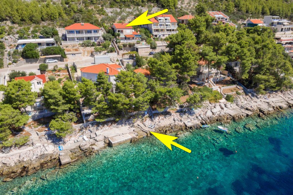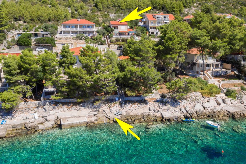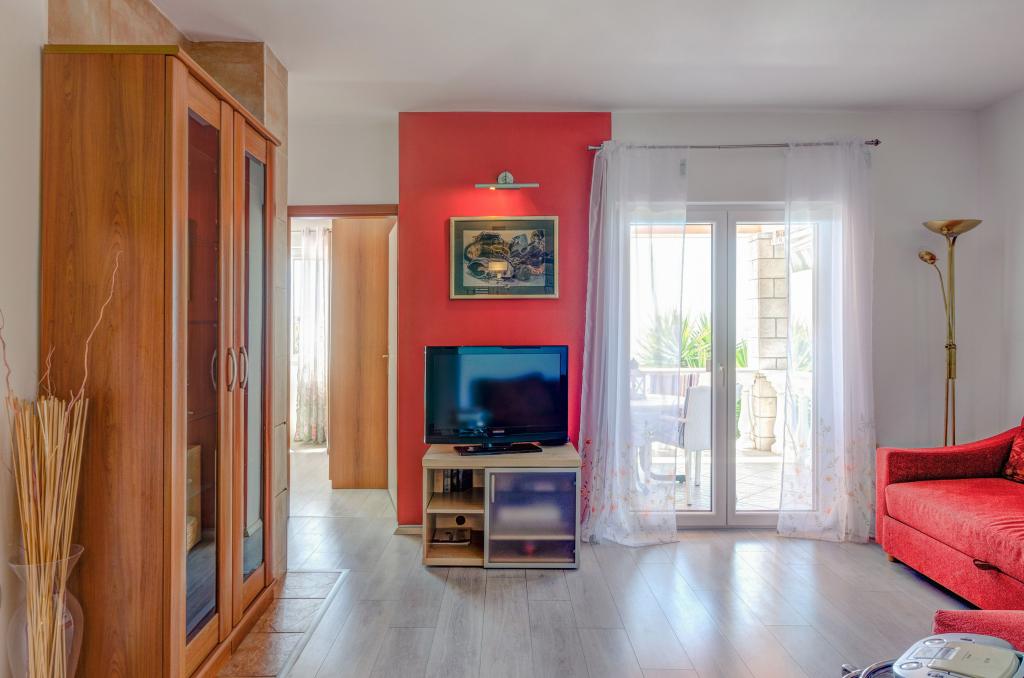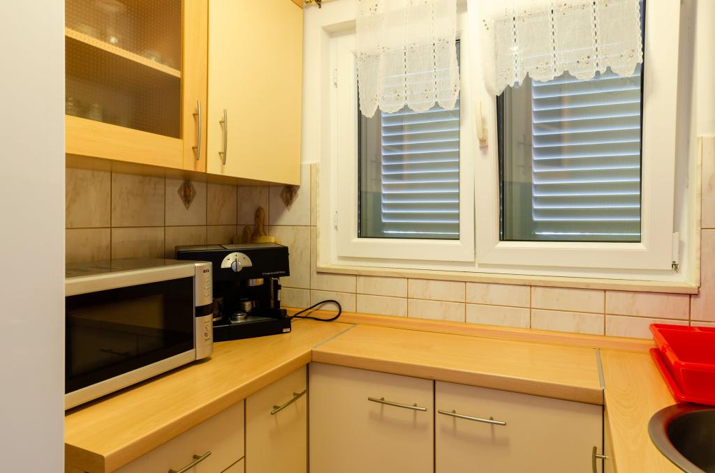 Mieszkanie w rodzinnym domu, orientacja północ-południe, 30m od morza, położone na pierwszym piętrze, składa się z dwóch sypialni, salonu/jadalni z kuchnią, małej garderoby, łazienki/toalety oraz tarasu z widokiem na morze od 12m2 W pobliżu apartamentu znajduje się sklep spożywczy, a do centrum Prizby można dojść pieszo ok. 400m do wszystkich innych obiektów.