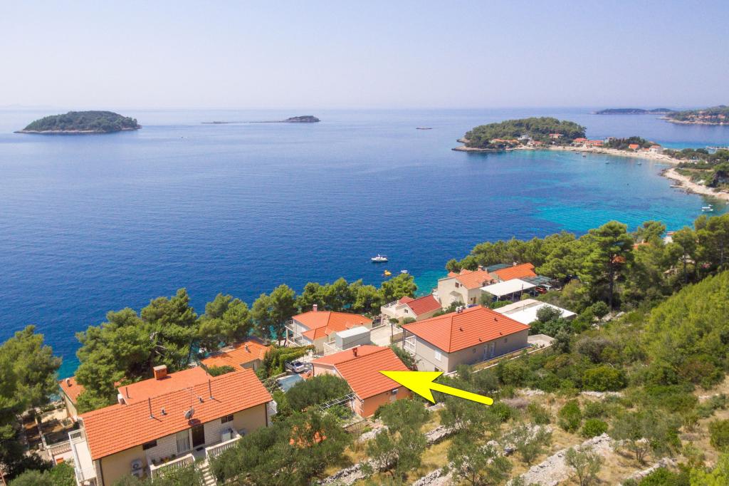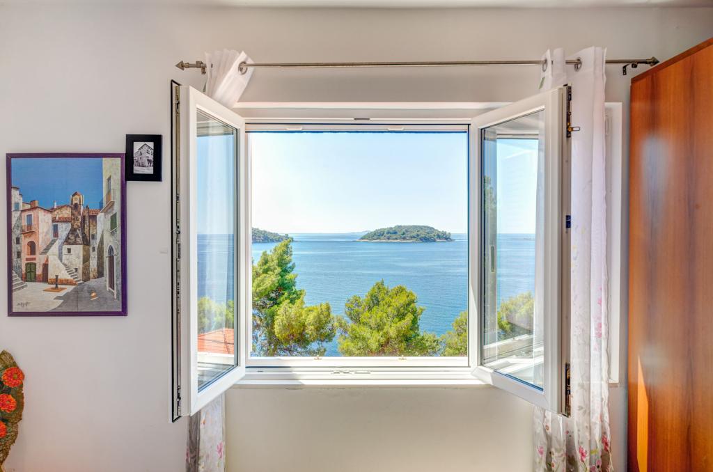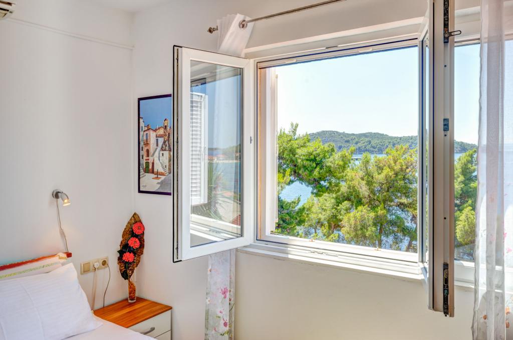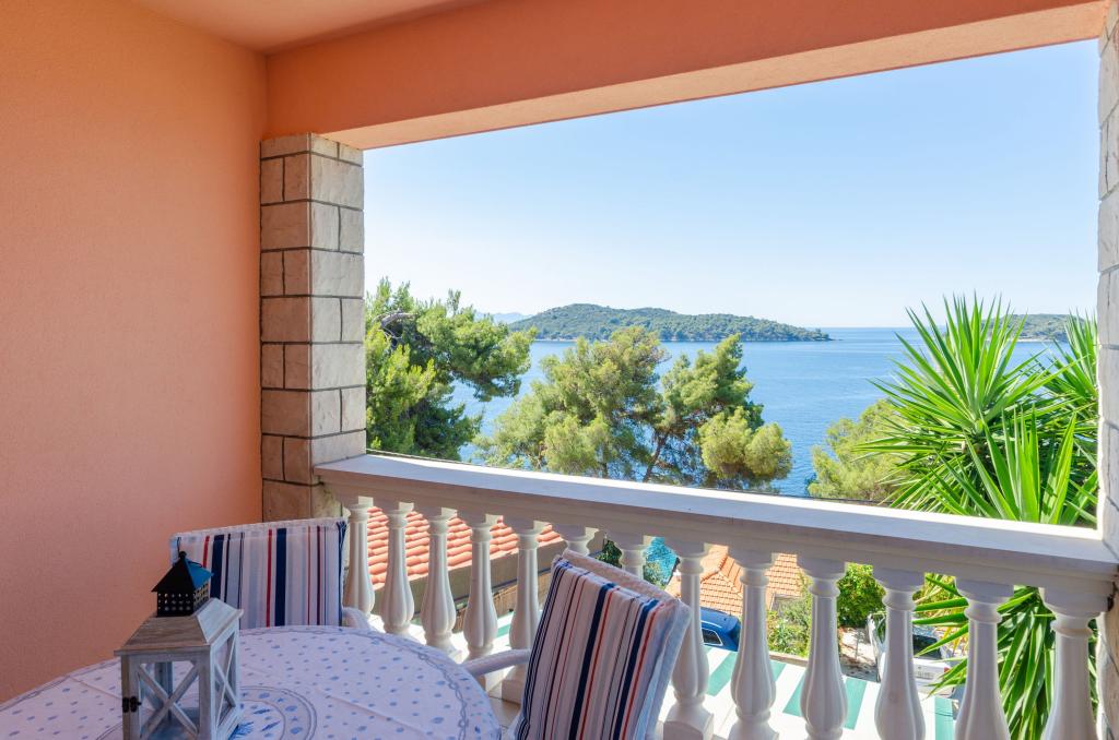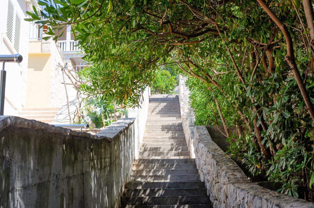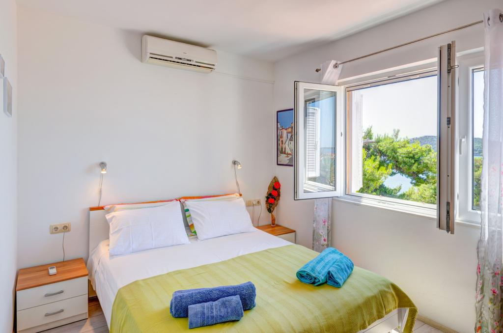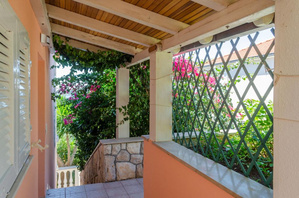 Mieszkanie w rodzinnym domu, orientacja północ-południe, 30m od morza, położone na pierwszym piętrze, składa się z dwóch sypialni, salonu/jadalni z kuchnią, małej garderoby, łazienki/toalety oraz tarasu z widokiem na morze od 12m2 W pobliżu apartamentu znajduje się sklep spożywczy, a do centrum Prizby można dojść pieszo ok. 400m do wszystkich innych obiektów.