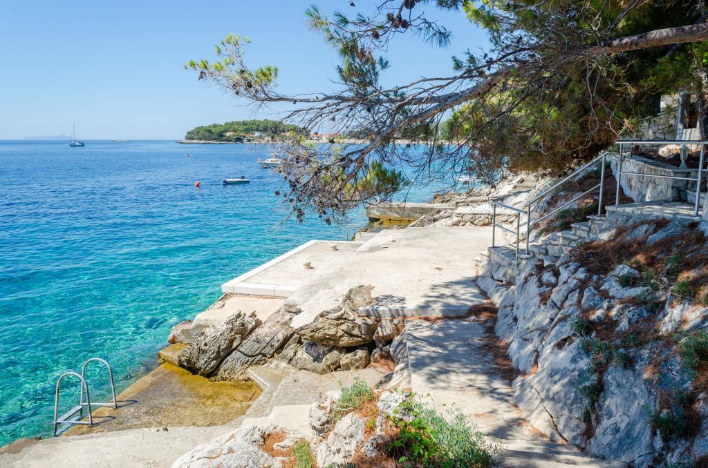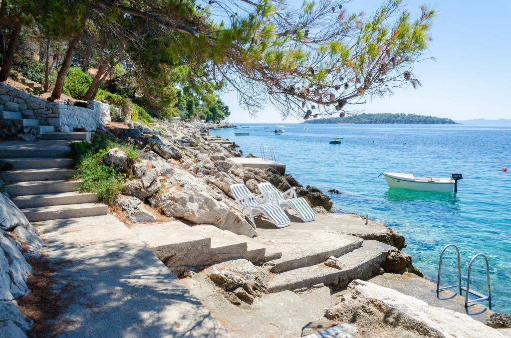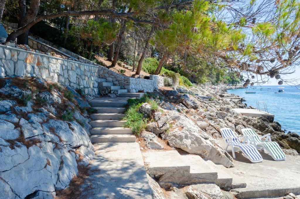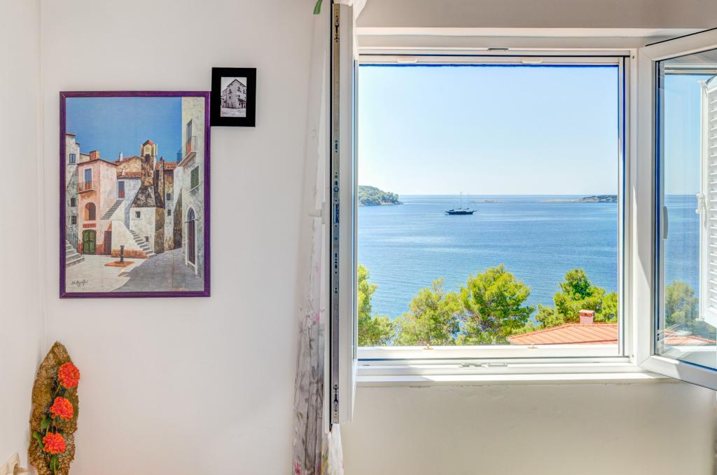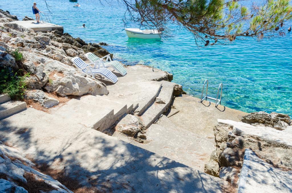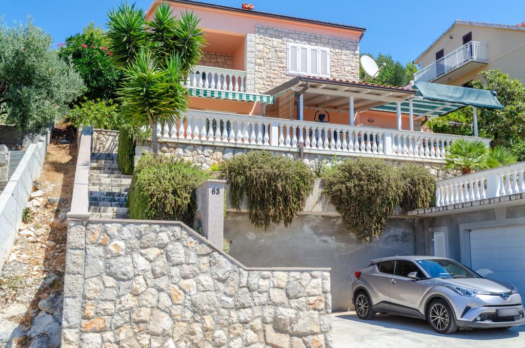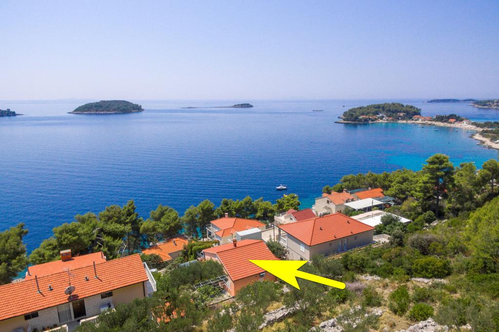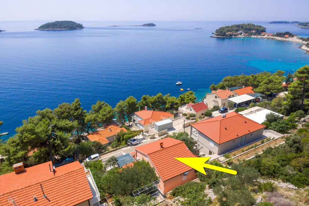 Mieszkanie w rodzinnym domu, orientacja północ-południe, 30m od morza, położone na pierwszym piętrze, składa się z dwóch sypialni, salonu/jadalni z kuchnią, małej garderoby, łazienki/toalety oraz tarasu z widokiem na morze od 12m2 W pobliżu apartamentu znajduje się sklep spożywczy, a do centrum Prizby można dojść pieszo ok. 400m do wszystkich innych obiektów.