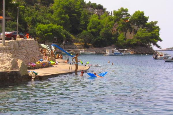 Położony w cichej zatoce, nasz obiekt oferuje spokojną ucieczkę w otoczeniu dziewiczej przyrody. Odkryj w pobliżu urokliwe, dobrze utrzymane plaże, w tym publiczną plażę (betonowe płyty) ze zjeżdżalnią oddaloną zaledwie 300 metrów i przyjazną dzieciom kamienistą plażę 100 metrów od domu. Odkryj mnóstwo pięknych zatoczek, plaż i wysp w zasięgu ręki, idealnych na jednodniowe wycieczki, czarterując łódź. Zanurz się w czarujący podwodny świat z doskonałymi miejscami do nurkowania w pobliżu. Zapisz się do szkoły windsurfingu lub rozpocznij przygodę nurkową z lokalnymi ośrodkami. Na miłośników aktywnego wypoczynku czekają pobliskie szlaki piesze i rowerowe.