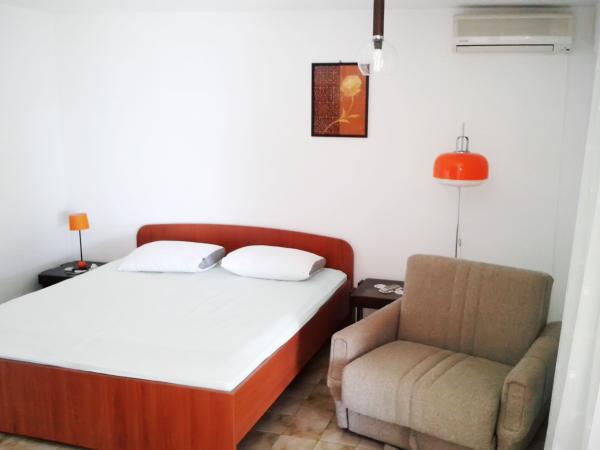 2 w pełni wyposażone apartamenty w domu na urlop, każdy na osobnym piętrze. Dom położony jest tuż nad brzegiem morza, w otoczeniu sosen. Z prywatnej plaży trzeba tylko kilka kroków. Z przodu znajduje się duży taras z widokiem na morze i okoliczne wyspy. Parking znajduje się na ulicy, nad domem. Ruch na drodze lokalnej jest niska intensywność, więc nie przeszkadza miły ciszę i dźwięki natury i morza. 5 minut spacerem od domu, na niewielkim półwyspie, znajduje się przepiękna plaża żwirowa w bezpośrednim sąsiedztwie znajduje się restauracja, supermarket i centrum nurkowania. Oprócz wypożyczalni sprzętu do nurkowania i oczywiście, że jest możliwe, aby wynająć łódź na solowej jazdy, skutera lub kajakiem. Dla wszystkich tych, którzy chcą spróbować spokój, czas przejść wolniej, powietrze odurzających i relaksujące zapachy sosny i krystalicznie czyste morze, chcemy serdecznie. Ciesz się ten kawałek nieba!