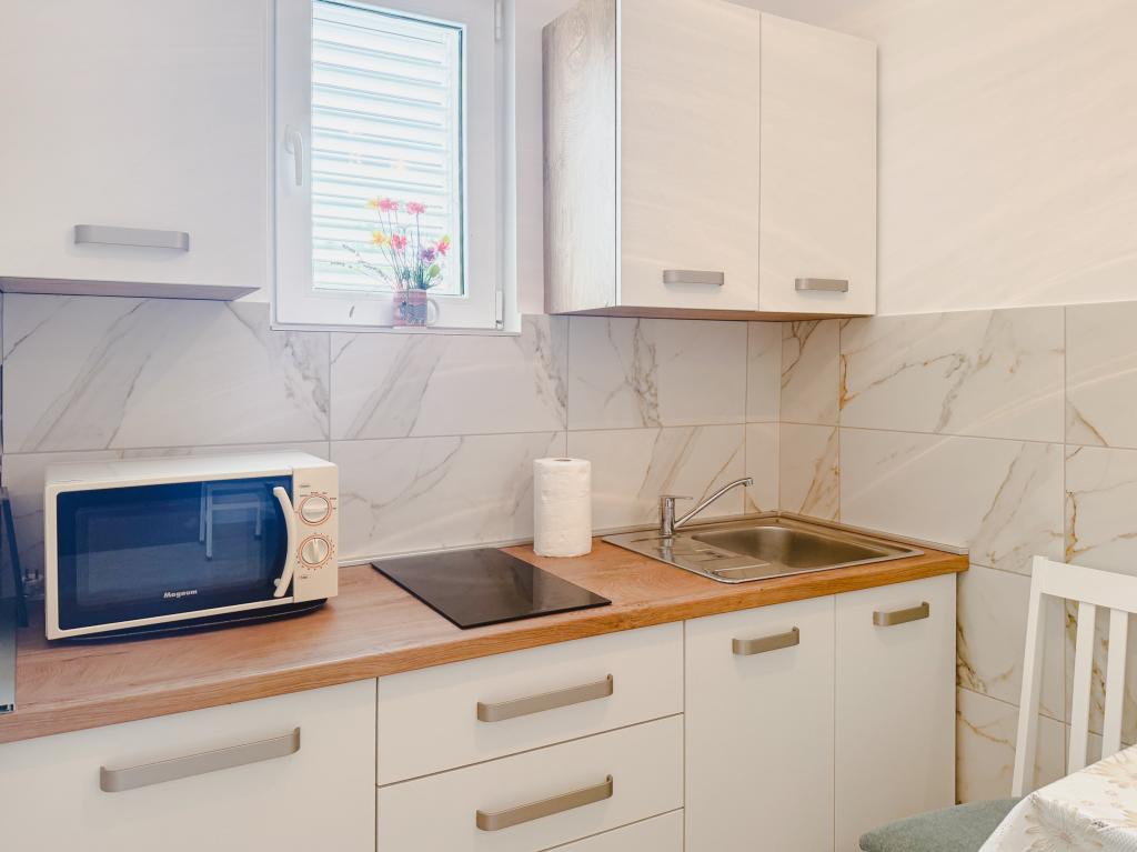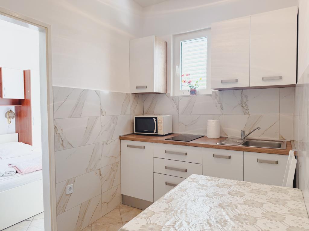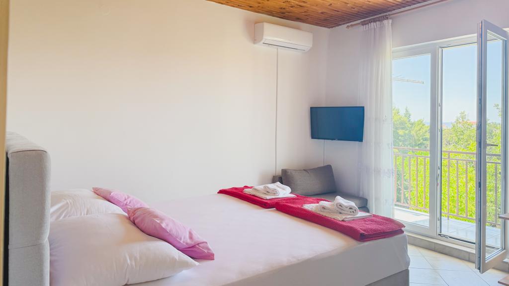 Apartamenty Rosemary położone są w spokojnej części Promajny, z dala od zgiełku turystów i samochodów. Droga na plażę ma 300 metrów. Nasze apartamenty posiadają prywatne balkony z widokiem na morze, prywatne miejsca parkingowe, klimatyzację, 2 sypialnie i prywatną kuchnię. Za domem znajduje się wspólny zacieniony taras.