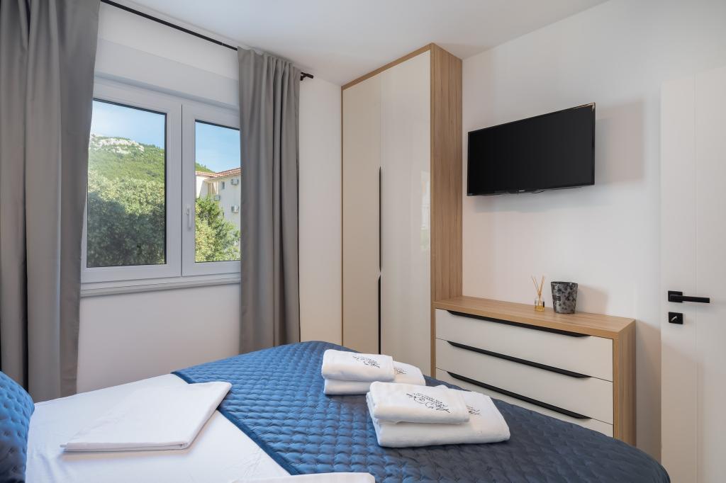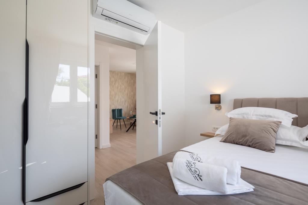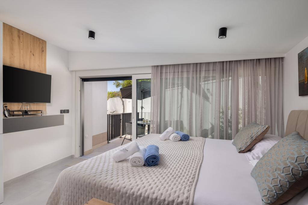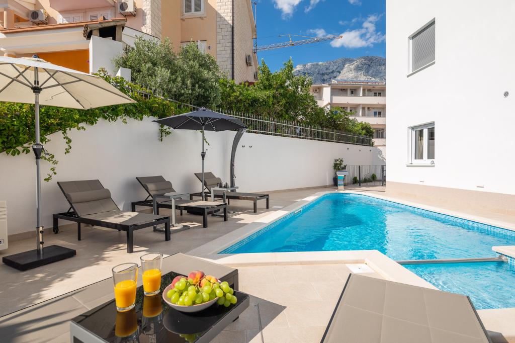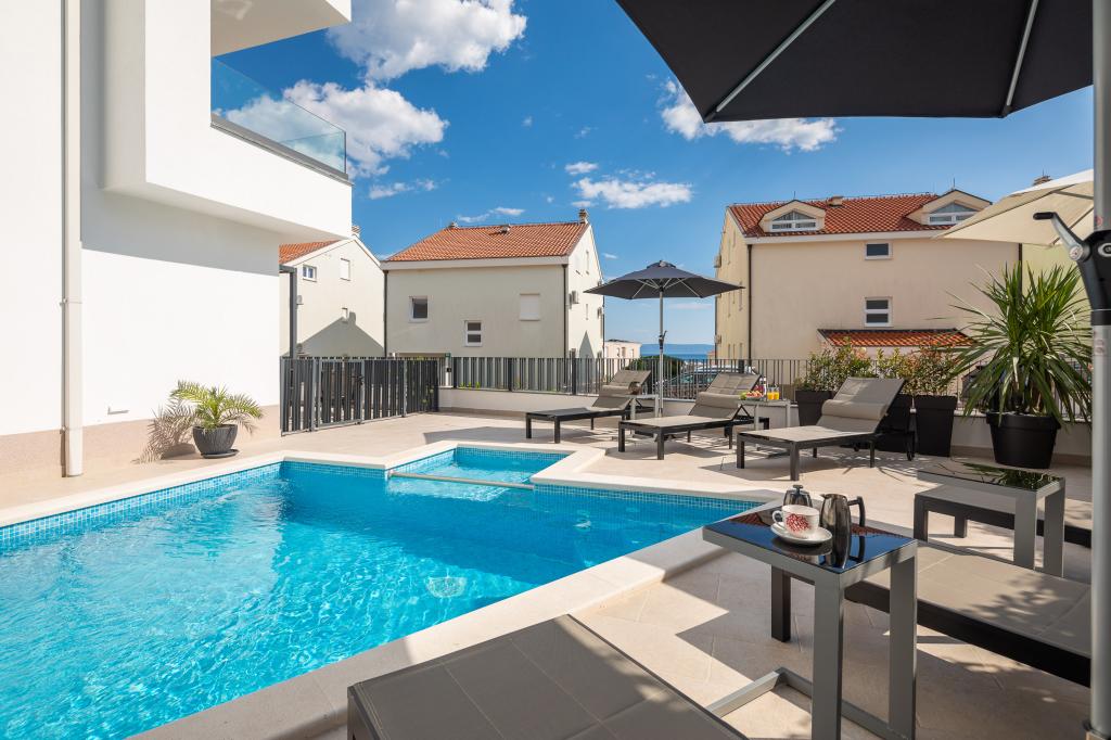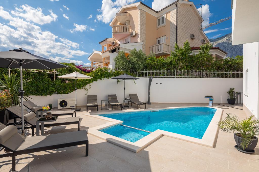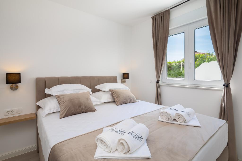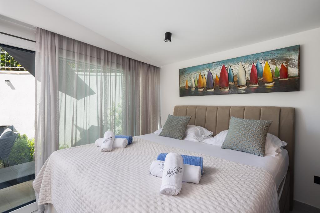 Przedstawiamy Państwu apartamenty A&D Deluxe z basenem, komfortowe jednostki noclegowe zlokalizowane w niewielkiej odległości od morza, zaledwie 300 metrów. Każdy apartament oferuje idealne połączenie komfortu i luksusu. Apartament A1 z 2 sypialniami, 2 łazienkami i przestronnym tarasem oferuje częściowy widok na morze i jest idealnym miejscem na wypoczynek dla rodzin lub małych grup. Dodatkowo goście mają bezpośredni dostęp do basenu, co pozwala cieszyć się poczęstunkiem i dodatkową rozrywką. Apartament A2, również z 2 sypialniami i 2 łazienkami, ma również dostęp do basenu, umożliwiając gościom dodatkową zabawę i relaks. Apartament A3 z jedną sypialnią i łazienką ma również dostęp do basenu i jest idealny dla par lub mniejszych rodzin szukających relaksujących wakacji w pobliżu morza. Wszystkie apartamenty są w pełni wyposażone, m.in. w kuchnie, prywatny parking, klimatyzatory i telewizory Smart TV, zapewniając komfort i wygodę podczas pobytu. Ciesz się luksusem prywatnego basenu i bliskością pięknych plaż w tych apartamentach.