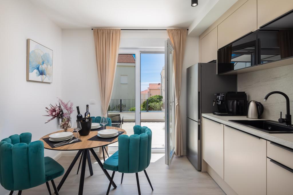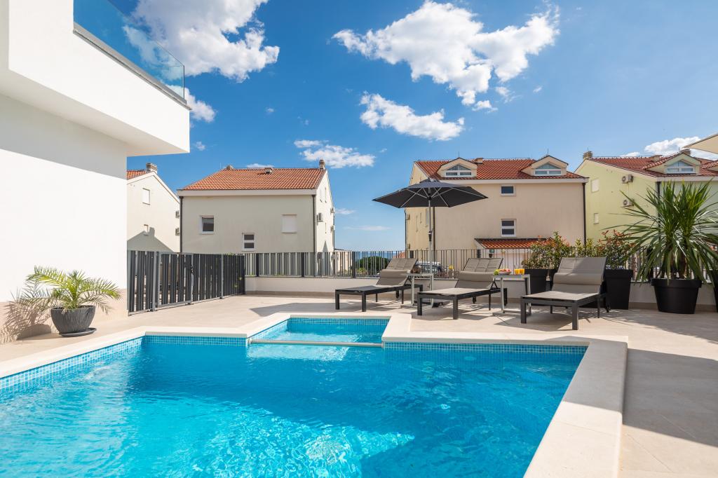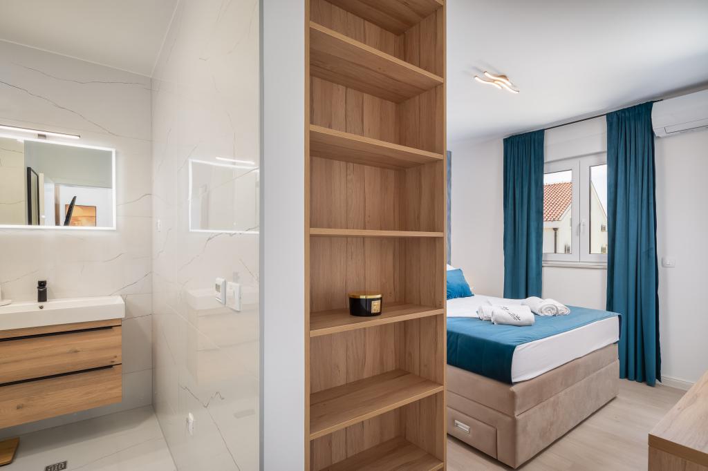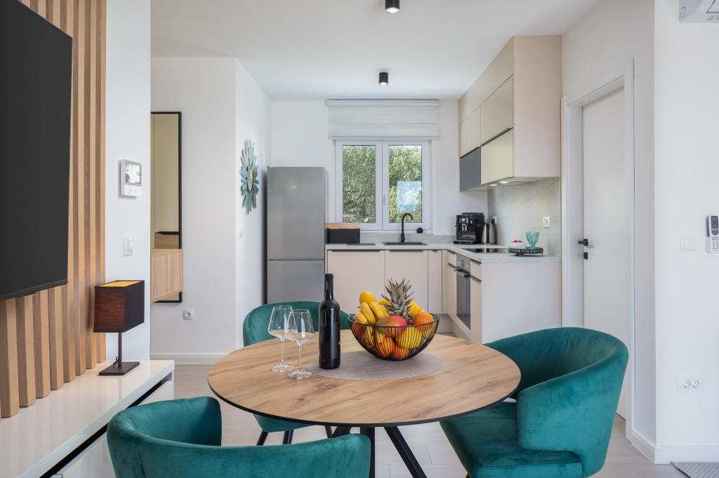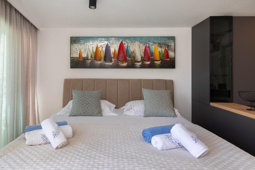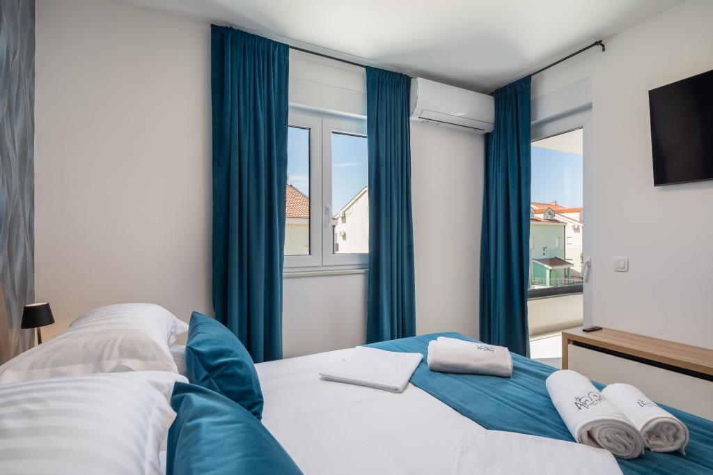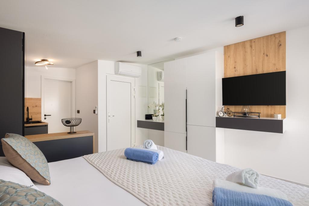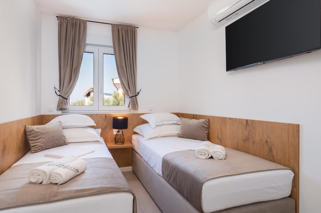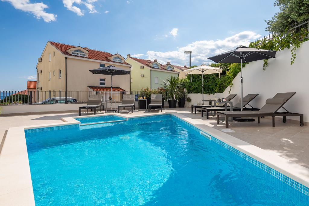 Przedstawiamy Państwu apartamenty A&D Deluxe z basenem, komfortowe jednostki noclegowe zlokalizowane w niewielkiej odległości od morza, zaledwie 300 metrów. Każdy apartament oferuje idealne połączenie komfortu i luksusu. Apartament A1 z 2 sypialniami, 2 łazienkami i przestronnym tarasem oferuje częściowy widok na morze i jest idealnym miejscem na wypoczynek dla rodzin lub małych grup. Dodatkowo goście mają bezpośredni dostęp do basenu, co pozwala cieszyć się poczęstunkiem i dodatkową rozrywką. Apartament A2, również z 2 sypialniami i 2 łazienkami, ma również dostęp do basenu, umożliwiając gościom dodatkową zabawę i relaks. Apartament A3 z jedną sypialnią i łazienką ma również dostęp do basenu i jest idealny dla par lub mniejszych rodzin szukających relaksujących wakacji w pobliżu morza. Wszystkie apartamenty są w pełni wyposażone, m.in. w kuchnie, prywatny parking, klimatyzatory i telewizory Smart TV, zapewniając komfort i wygodę podczas pobytu. Ciesz się luksusem prywatnego basenu i bliskością pięknych plaż w tych apartamentach.