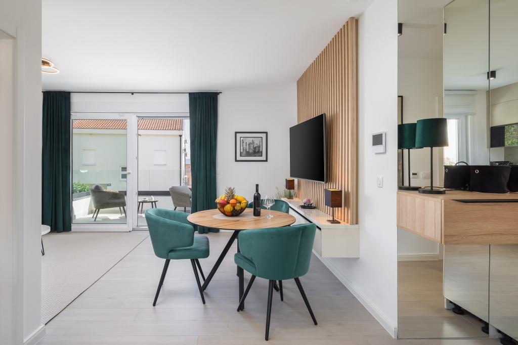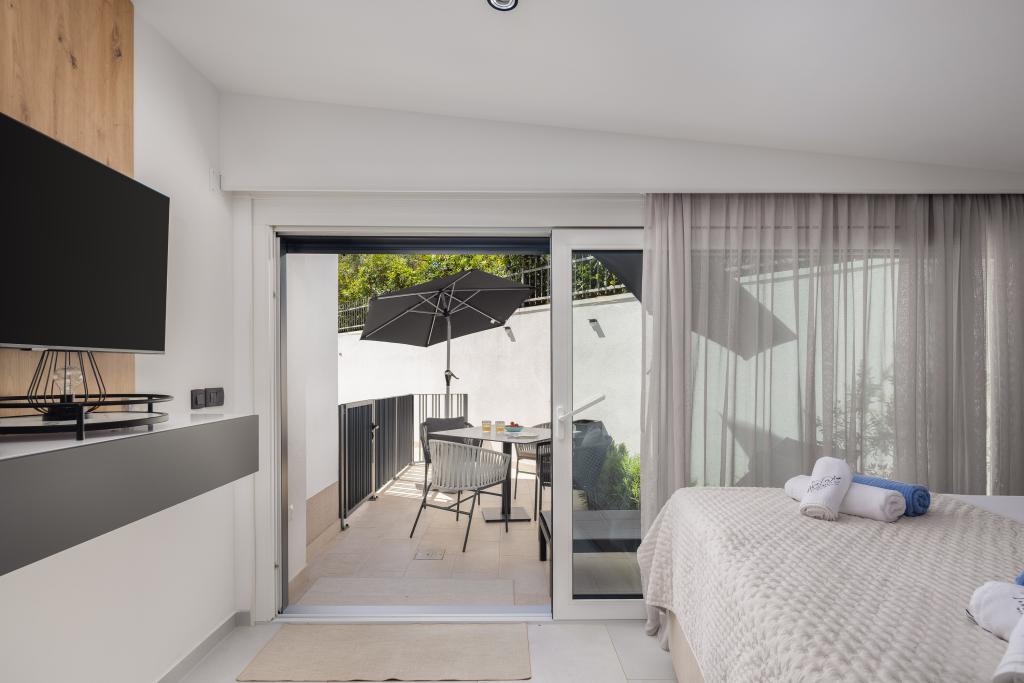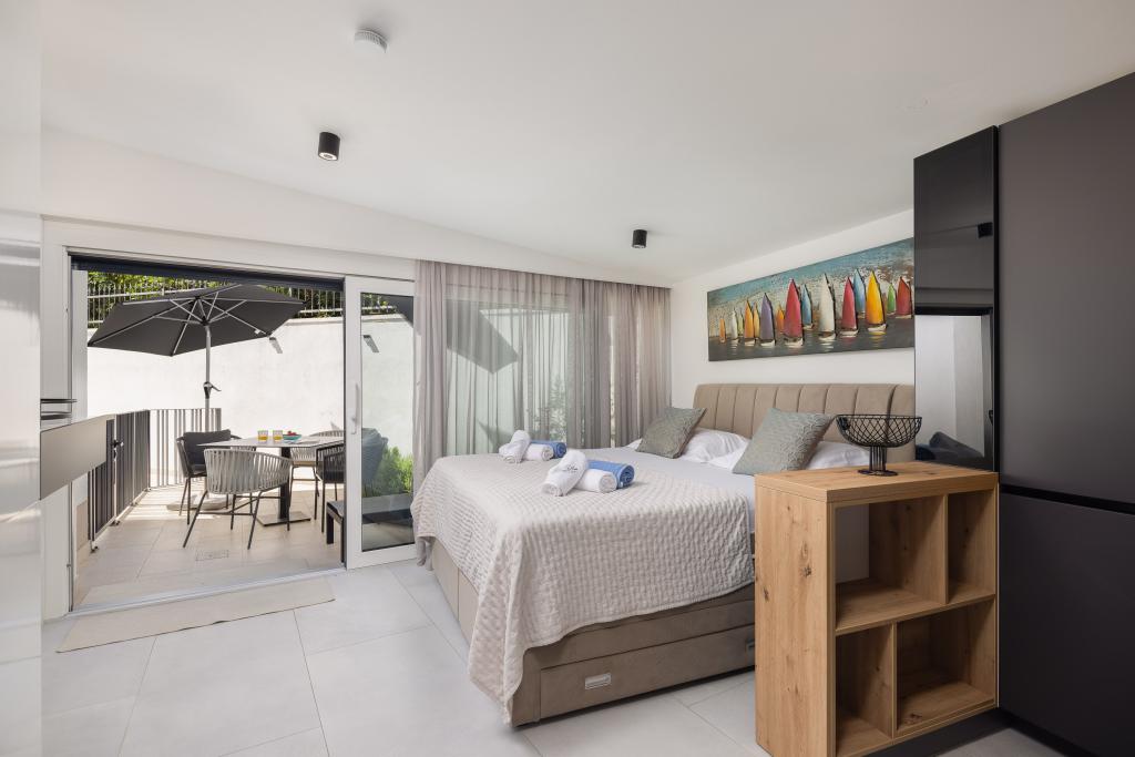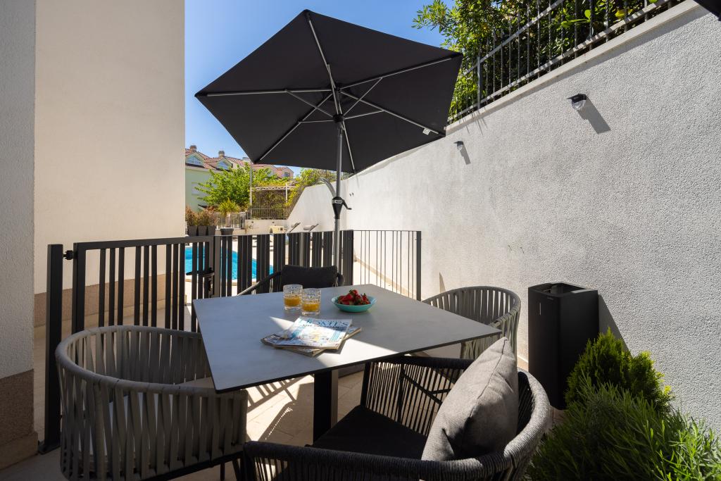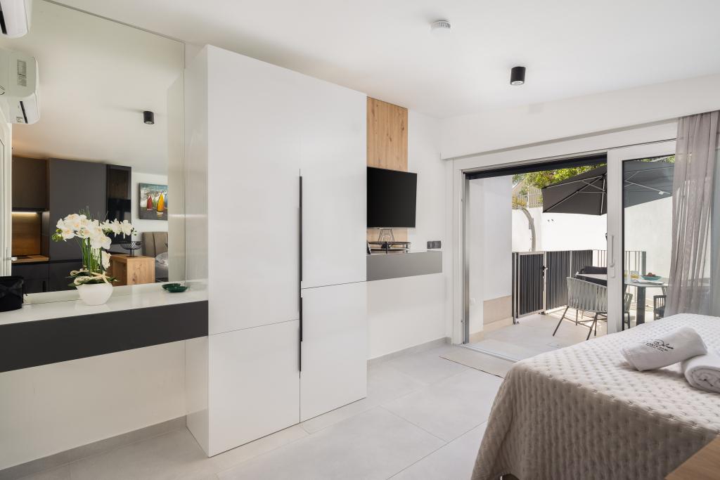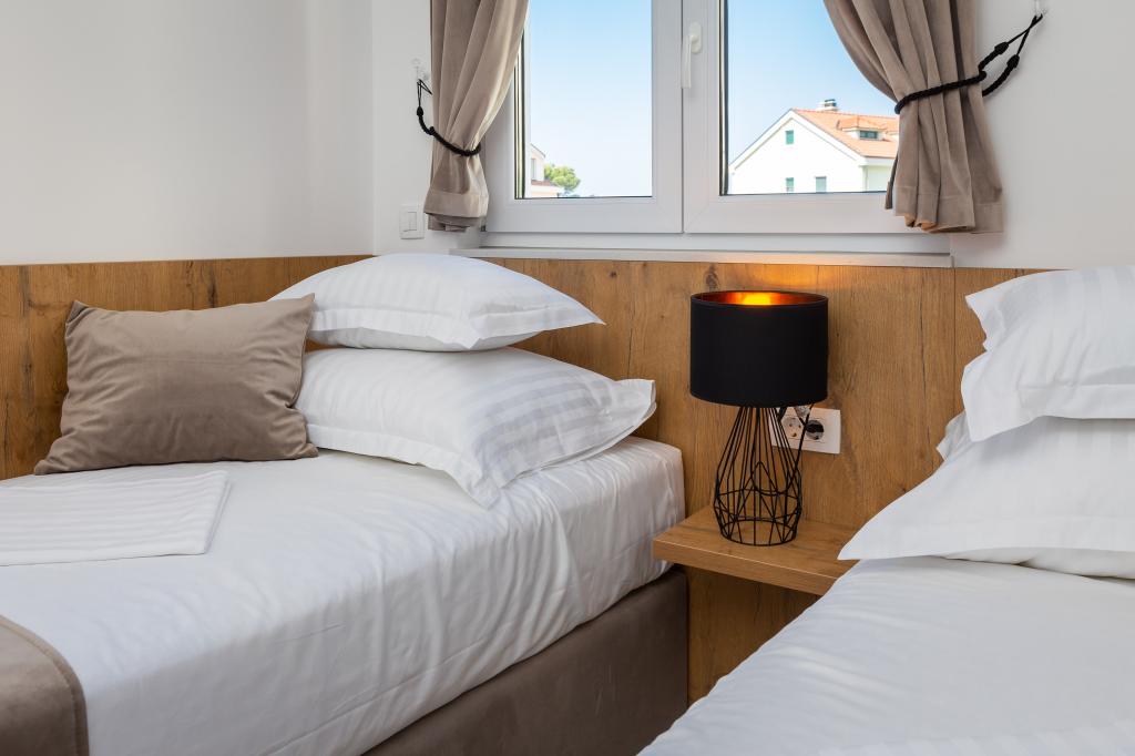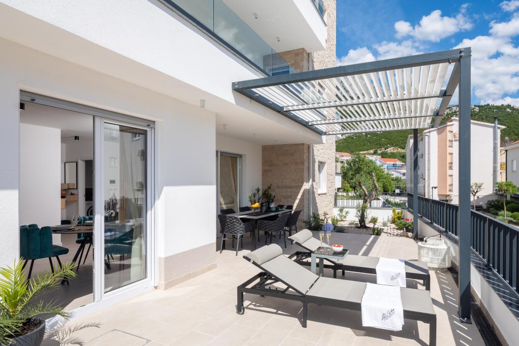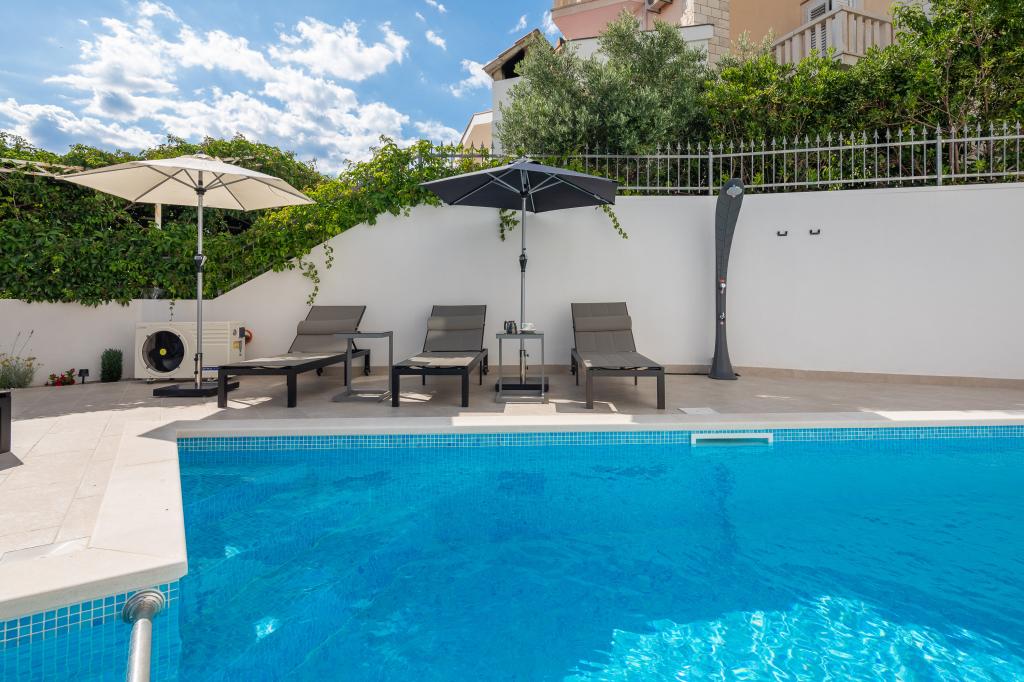 Przedstawiamy Państwu apartamenty A&D Deluxe z basenem, komfortowe jednostki noclegowe zlokalizowane w niewielkiej odległości od morza, zaledwie 300 metrów. Każdy apartament oferuje idealne połączenie komfortu i luksusu. Apartament A1 z 2 sypialniami, 2 łazienkami i przestronnym tarasem oferuje częściowy widok na morze i jest idealnym miejscem na wypoczynek dla rodzin lub małych grup. Dodatkowo goście mają bezpośredni dostęp do basenu, co pozwala cieszyć się poczęstunkiem i dodatkową rozrywką. Apartament A2, również z 2 sypialniami i 2 łazienkami, ma również dostęp do basenu, umożliwiając gościom dodatkową zabawę i relaks. Apartament A3 z jedną sypialnią i łazienką ma również dostęp do basenu i jest idealny dla par lub mniejszych rodzin szukających relaksujących wakacji w pobliżu morza. Wszystkie apartamenty są w pełni wyposażone, m.in. w kuchnie, prywatny parking, klimatyzatory i telewizory Smart TV, zapewniając komfort i wygodę podczas pobytu. Ciesz się luksusem prywatnego basenu i bliskością pięknych plaż w tych apartamentach.