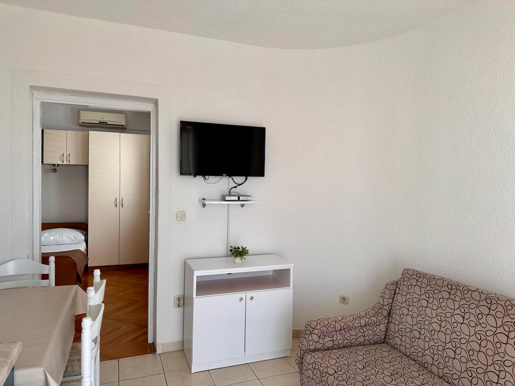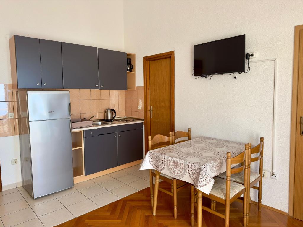 Apartamenty Barać znajdują się w cichej okolicy, mają piękny widok na morze i znajdują się około 150 metrów od centrum miasta i długiej kamienistej plaży. W domu oferujemy apartamenty typu studio i apartamenty z oddzielną sypialnią, kategoria trzy gwiazdki. Wszystkie apartamenty są klimatyzowane, posiadają osobną łazienkę, kuchnię, telewizję satelitarną oraz bezprzewodowy Internet. Kuchnie wyposażone są w lodówkę oraz standardowe przybory kuchenne i naczynia, istnieje również możliwość korzystania z grilla na świeżym powietrzu. Dobry wybór dla wszystkich, którzy chcą zamieszkać w cichym otoczeniu, blisko wymarzonej plaży.