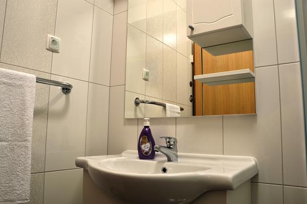Mieszkaliśmy w mieszkaniu 2+2 w piwnicy. Wszystko pięknie czyste, nowe, w pełni wyposażone. Wspięliśmy się po schodach i mogliśmy wskoczyć prosto do basenu. Basen był piękny, czysty. Gospodyni jest bardzo miła. Morze jest blisko, 3 minuty spacerem od domu. Wszystko w 1*. Chętnie tu wrócimy!