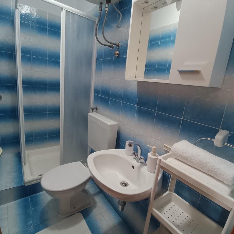 Przebywaliśmy w pokoju dwu osobowym z łazienką, w pełni wyposażoną kuchnią oraz balkonem z bocznym widokiem zarówno na morze jak i na góry. Pokój bardzo czysty i schludny, bez żadnych zastrzeżeń. Właścicielka dostępna na miejscu, bardzo kontaktowa i pomocna nie tylko w sprawach zakwaterowania ale również doradziła gdzie dobrze i tanio zjeść, gdzie kupić najlepszą domową oliwę itp. W przyszłym roku napewno również zagościmy tym razem ze znajomymi.
