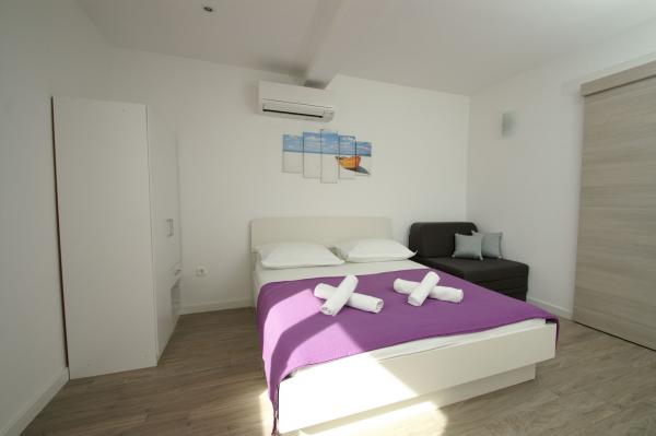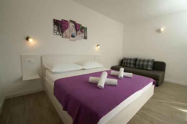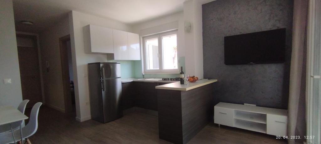 Apartamenty w nowo wybudowanym budynku, 60 metrów od pięknej kamienistej plaży z naturalnym cieniem. Apartamenty są w pełni wyposażone dla przyjemnego pobytu. Parking znajduje się na dziedzińcu budynku. Wszystkie apartamenty mają otwarty widok na morze. W pobliżu znajduje się zielony targ, piekarnia i bazar. Plaża oddalona jest od obiektu o 80 metrów lub 2 minuty spacerem.