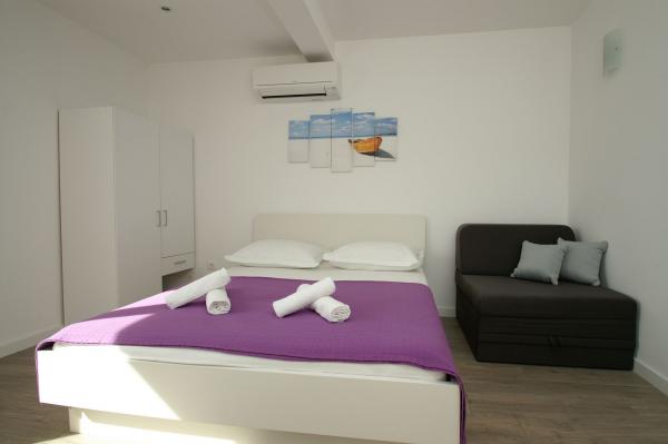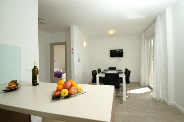 Przyjaźni gospodarze, apartament wysokiej klasy, nowocześnie, bardzo czysto. Pełne, wystarczające wyposażenie. Łagodne zejście blisko do plaży i bardzo czyste morze. Cicha i spokojna okolica bez zgiełku ulicy. Bardzo polecamy.