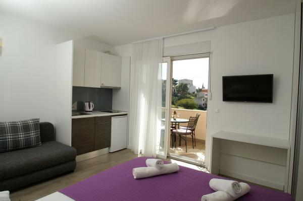 Sygnał Wi-Fi w mieszkaniu jest bardzo zły, a połączenie internetowe jest w dużej mierze brakuje. Nie ma również mobilnego Internetu HT (brak sygnału). Chociaż jest to pokój dla 3 osób, jest to w rzeczywistości studio dla 2 osób, ponieważ łóżko pomocnicze to w rzeczywistości twarda i niewygodna sofa i spanie na tej samej prostej torturze, a nie odpoczynku. Kuchnia jest bardzo skromnie wyposażona w przybory kuchenne i przybory kuchenne. Stół i krzesła są tylko na tarasie. W sumie to studio jest odpowiednie dla dwóch osób, które potrzebują miejsca do spania i jedzenia, a które nie planują niczego zjeść podczas corocznych wakacji. Jednak cena mieszkania jest absolutnie zbyt wysoka dla takiej oferty. Zdecydowanie największym minusem tego mieszkania są gospodarze skupieni wyłącznie na pieniądzach, a satysfakcja gości jest zupełnie nieistotna. Domicil Dijana jest wyjątkowo nieuprzejmy i nieprofesjonalny.