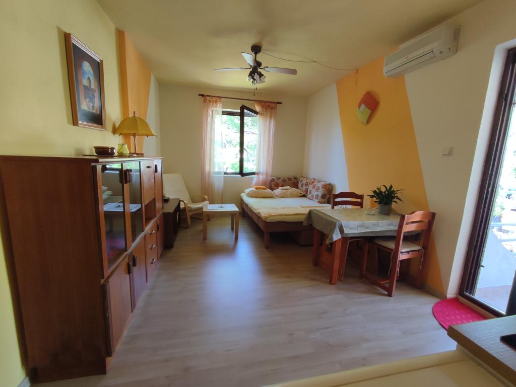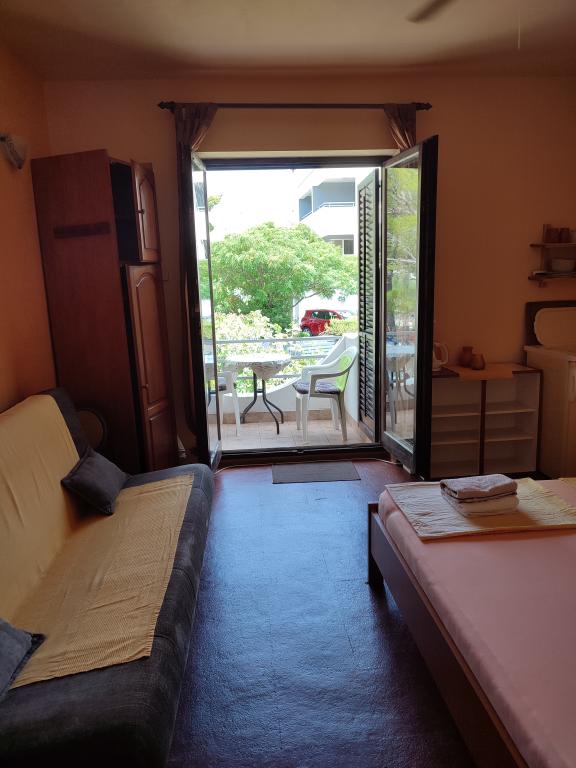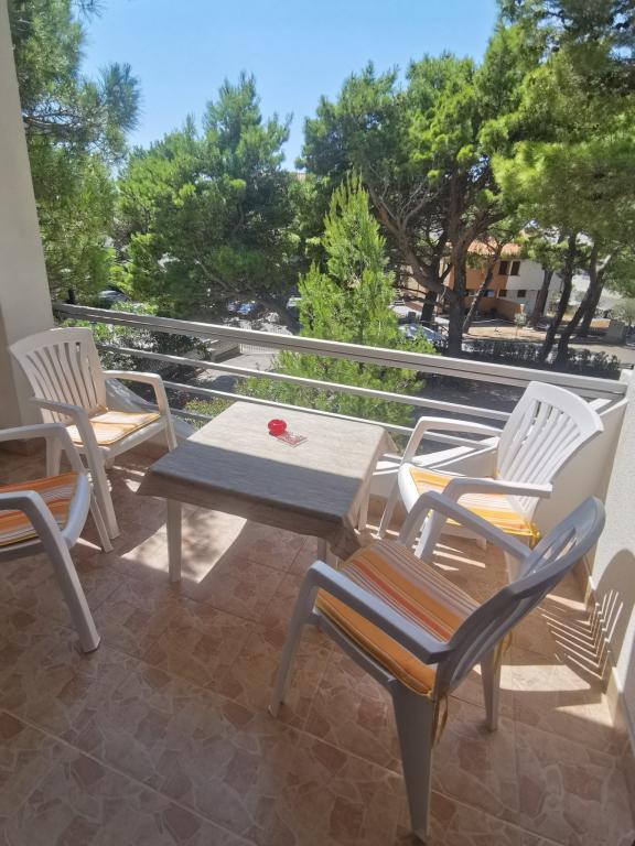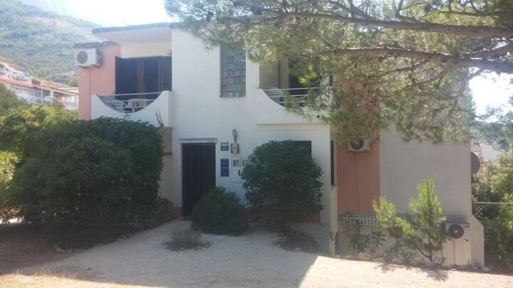 Zakwaterowanie wakacyjne na pierwszym piętrze domu otoczonego dużym podwórzem z sosnami. Parking znajduje się na podwórzu, centrum i plaża z kawiarniami znajdują się w odległości około 350 m, a pierwsza restauracja i sklep w odległości 150 m. Oferujemy 3 jednostki noclegowe: sypialnię dla dwóch osób, sypialnię dla dwóch osób z balkonem oraz dwupokojowy apartament dla dwóch osób z możliwością dostawki dla trzeciej osoby dorosłej lub dwójki dzieci. Każda sypialnia posiada własną łazienkę. Obydwa pokoje apartamentu posiadają balkon z widokiem na dziedziniec. Istnieje możliwość wynajęcia całego piętra (1 piętro) dla 6 osób dorosłych i 1-2 dzieci. W celu uzyskania pozostałych informacji właściciel jest dostępny od 08:00 do 20:00 (Saša mobile: +385 98 493 101).