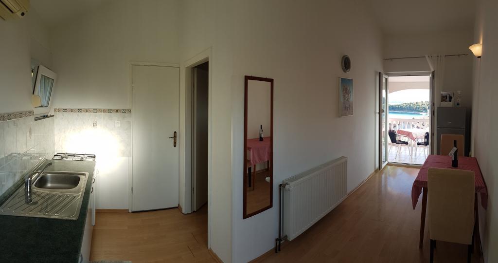 Apartamenty Ela oferują: 3 komfortowe apartamenty na lato i zimę. Wspaniałe widoki na otwarte morze oraz z przestronnego tarasu i balkonów otoczonych przez gaje oliwne i sady cytrusowe. Prvić to niezwykła mała wyspa (2,4 km2) oddalona od lądu około 800 m. Cicha, bez ruchu samochodowego, krystalicznie czysta woda, niezliczone promenady. A jednocześnie blisko Parku Narodowego Krka, Parku Narodowego Kornati i wielu innych atrakcji (Park Przyrody Jeziora Vranskiego, Kamjenjak, Šibenik, Zadar, Split, Murter, Betina, itp.). Transport na wyspę iz wyspy jest łatwy. Istnieje łódź pasażerska z Vodic i Šibenika, są też taksówki wodne. Parking strzeżony w Srimie (20-30 kn dziennie) Nieograniczony dostęp do krystalicznie czystych wód Adriatyku. Są plaże żwirowe, całe skały, ale także odpowiednie wejścia żwirowe. Większość w odległości 200 m od domu.