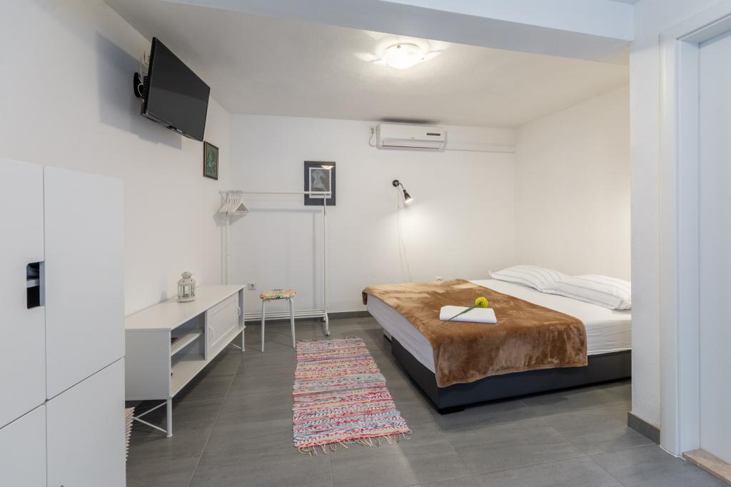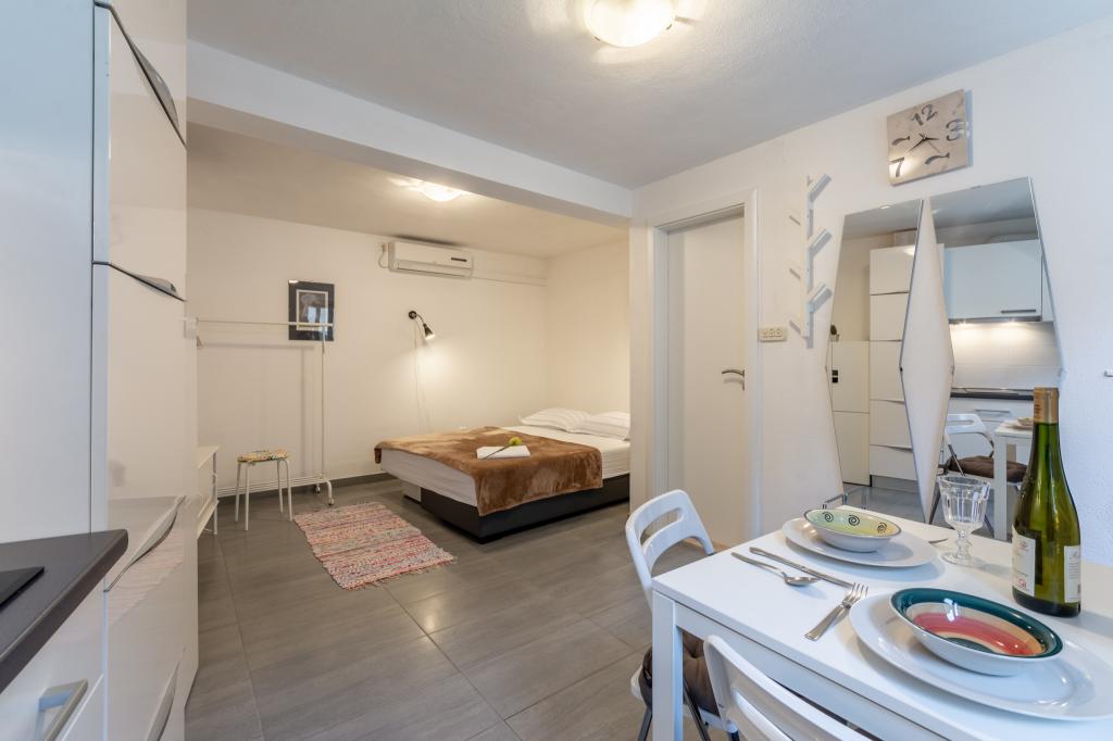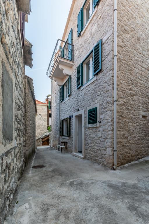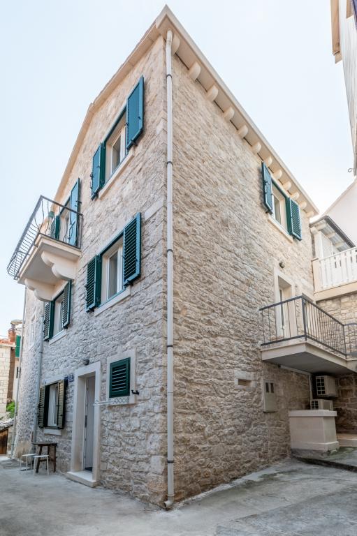 Dom z kamienia w spokojnej części Pucisca, umieszczone drugim rzędzie od morza, w pobliżu plaży, restauracji i sklepów, z pięknym widokiem na morze, nabrzeża i centrum miasta. Dom posiada dwa w pełni wyposażone apartamenty, które mogą być wynajmowane oddzielnie i razem.