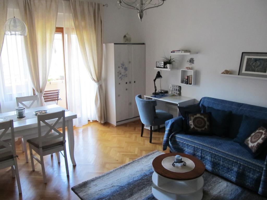 Apartament Aquileia położony jest w spokojnej okolicy, niedaleko nabrzeża i centrum miasta, muzeów i wszystkich zabytków. Amfiteatr oddalony jest od obiektu o 500 metrów, lokalny dworzec autobusowy – o niecałe 100 metrów, a do głównego dworca autobusowego i kolejowego – o 400 metrów. Do Parku Narodowego Brijuni można dotrzeć łodzią z pobliskiego miasta Fažane. W najbliższej okolicy znajduje się wiele pięknych parków, restauracji i sklepów. Mieszkanie ma powierzchnię 60 m2 i znajduje się na 4 z 5 pięter (bez windy) w nowo wyremontowanym mniejszym budynku mieszkalnym. Posiada sypialnię z łóżkiem małżeńskim i przestronną łazienką, salon z rozkładaną sofą, jadalnię i kuchnię oraz balkon z widokiem na morze. Apartament wyposażony jest w klimatyzację, telewizor oraz bezpłatny bezprzewodowy internet. Dostępne jest krzesełko dla dziecka i łóżeczko dziecięce. W apartamencie obowiązuje zakaz palenia tytoniu oraz trzymania zwierząt.