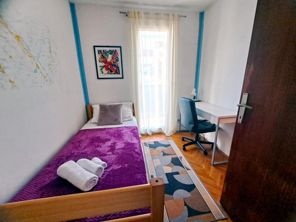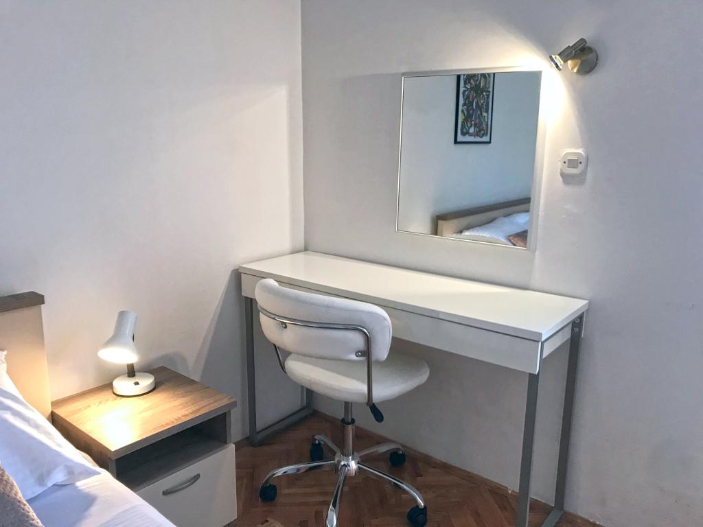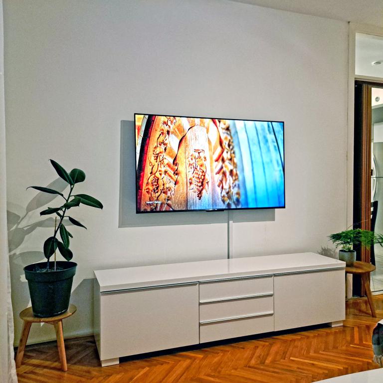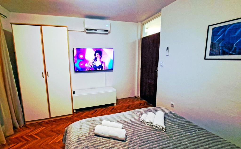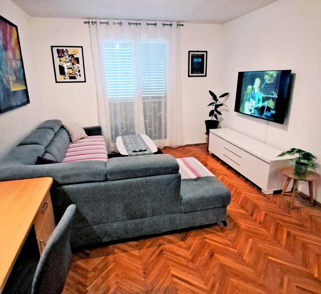 Komfortowy i nowoczesny apartament w spokojnej okolicy w centrum Puli, idealny dla par, rodzin (do 5 osób) lub osób podróżujących służbowo. Składa się z dwóch sypialni – dwuosobowej (klimatyzowanej) i jednoosobowej, klimatyzowanego salonu z kącikiem do pracy i rozkładaną sofą dla dwóch osób, w pełni wyposażonej kuchni, jadalni, łazienki z wanną, dodatkowej toalety oraz balkonu z widokiem na park. Apartament wyposażony jest w trzy telewizory Smart TV (50", 43", 55") oraz szybki internet optyczny z możliwością podłączenia przewodowego. Znajduje się 5 minut spacerem od miejskiego targowiska i starego centrum Puli, a do morza jest niecałe 2 km. Parking znajduje się przed budynkiem. Apartament oferuje idealne połączenie komfortu, nowoczesnych udogodnień i doskonałej lokalizacji do zwiedzania Puli!