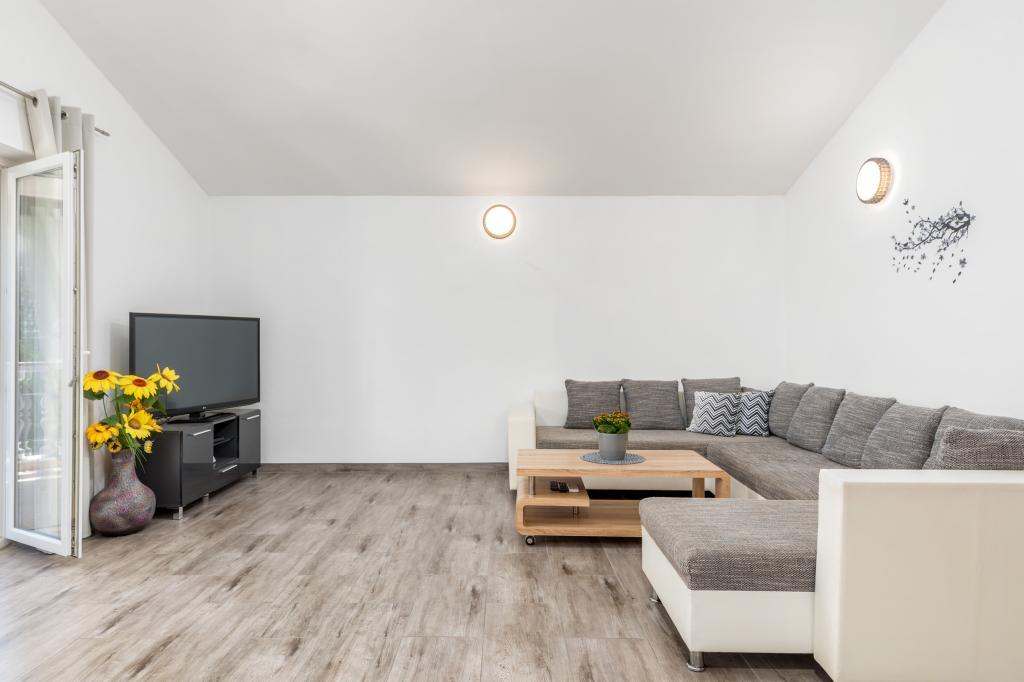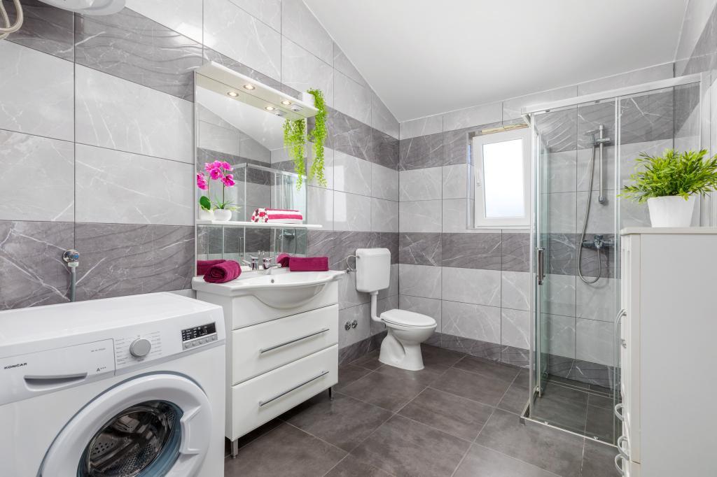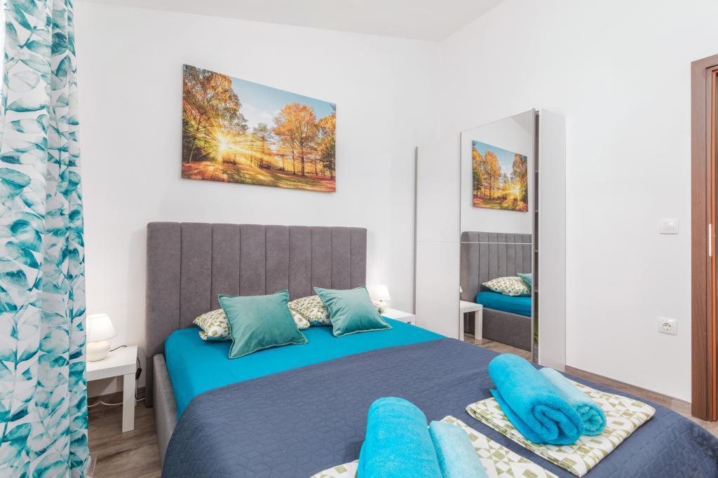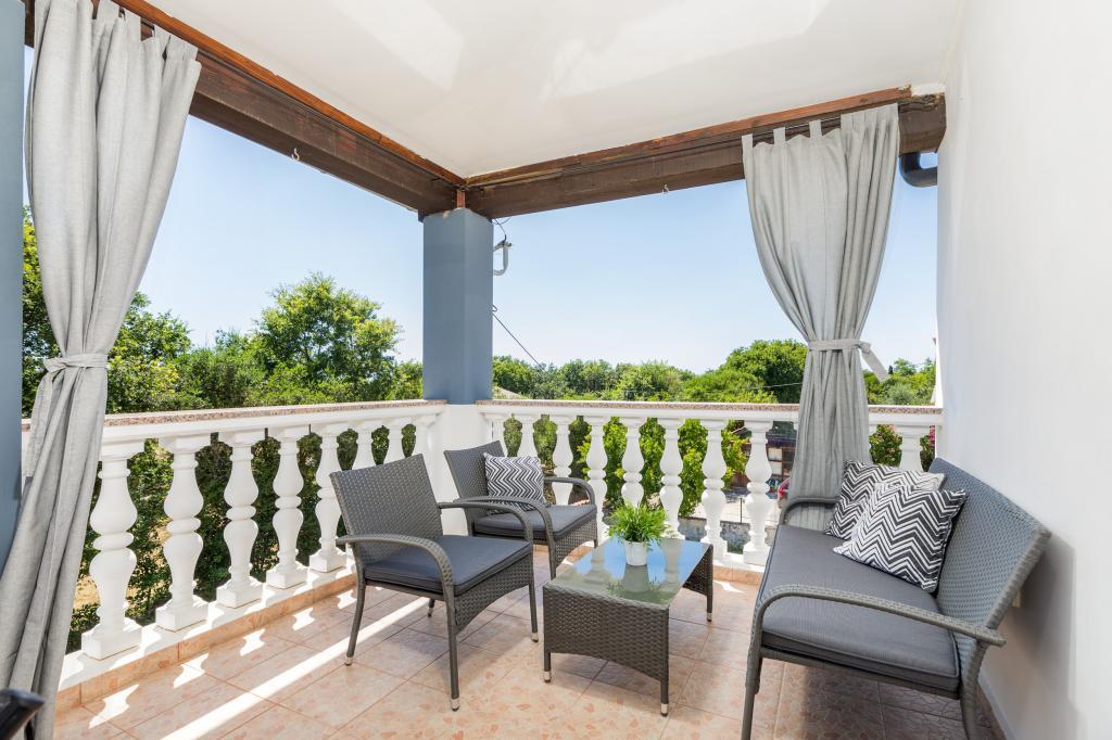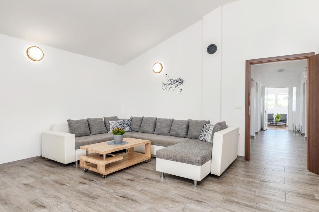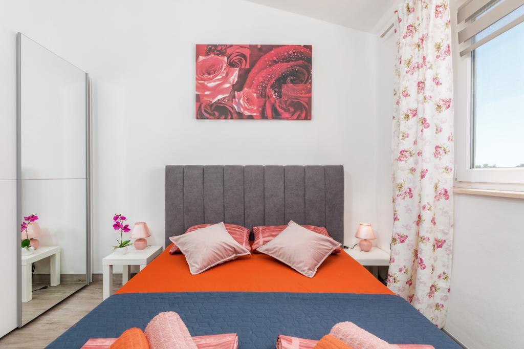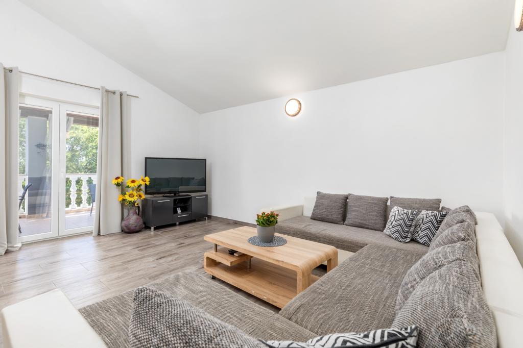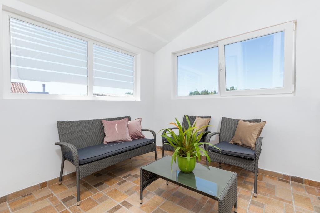 Zrelaksujcie się w nowo wybudowanym obiekcie tylko 8 km od centrum Puli i 10 km od pierwszej plaży. Spokojna okolica na skraju lasu, budząca się przy śpiewie ptaków. Mieszkanie na pierwszym piętrze posiada 3 sypialnie, łazienkę wyposażoną w pralkę i prysznic, kuchnię z pralką, jadalnię oraz salon. Zadaszony taras ze stołem jadalnym i meblami wypoczynkowymi, a na parterze grill z towarzyszącym wyposażeniem i dużym ogrodem. Wi-Fi, łóżeczko dla dziecka, karmnik, bezpłatny parking. Blisko plac zabaw i supermarket.