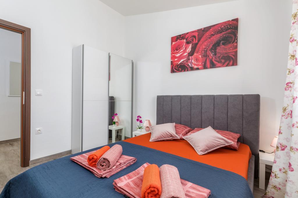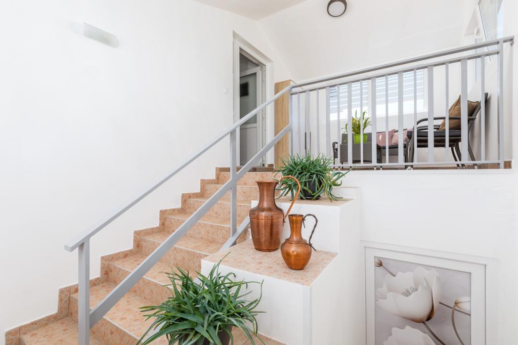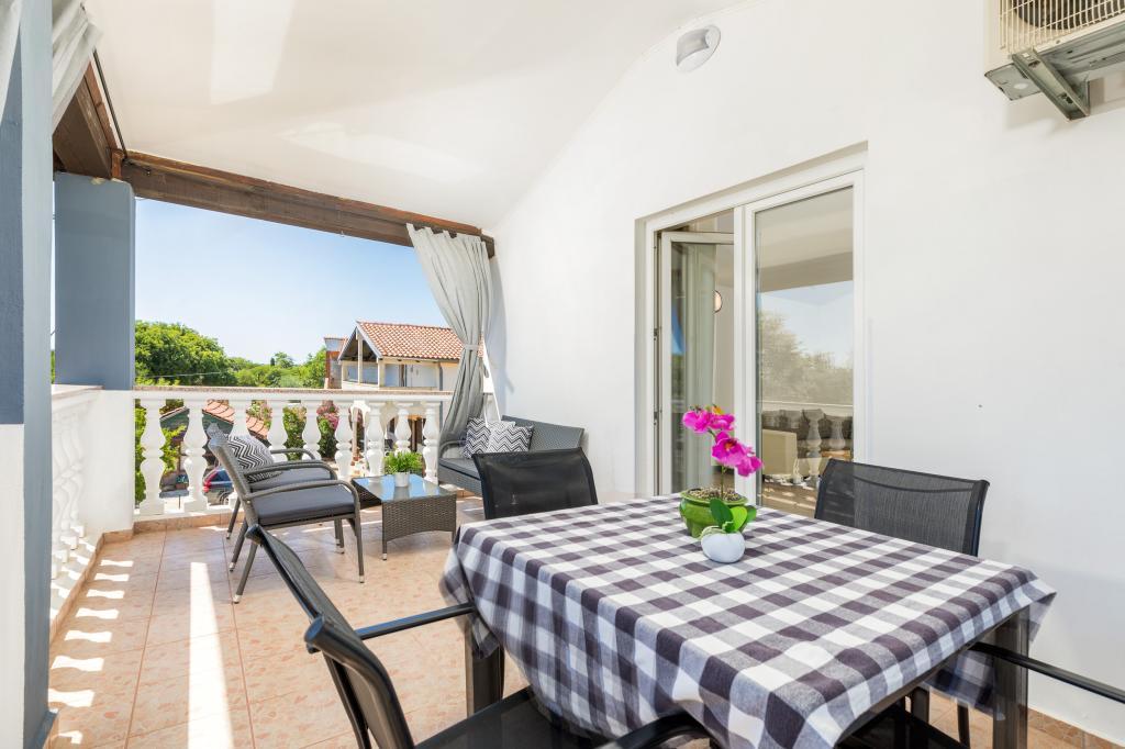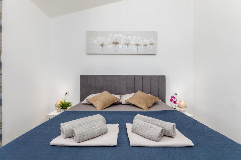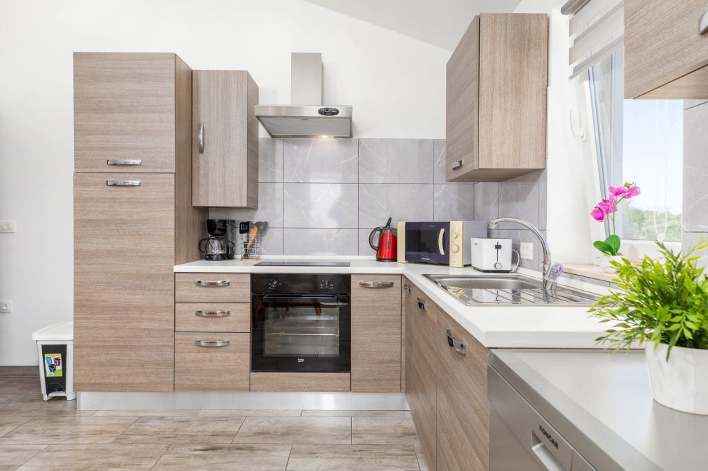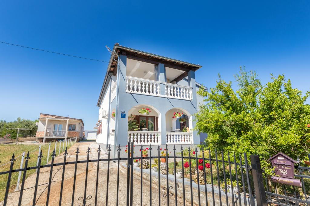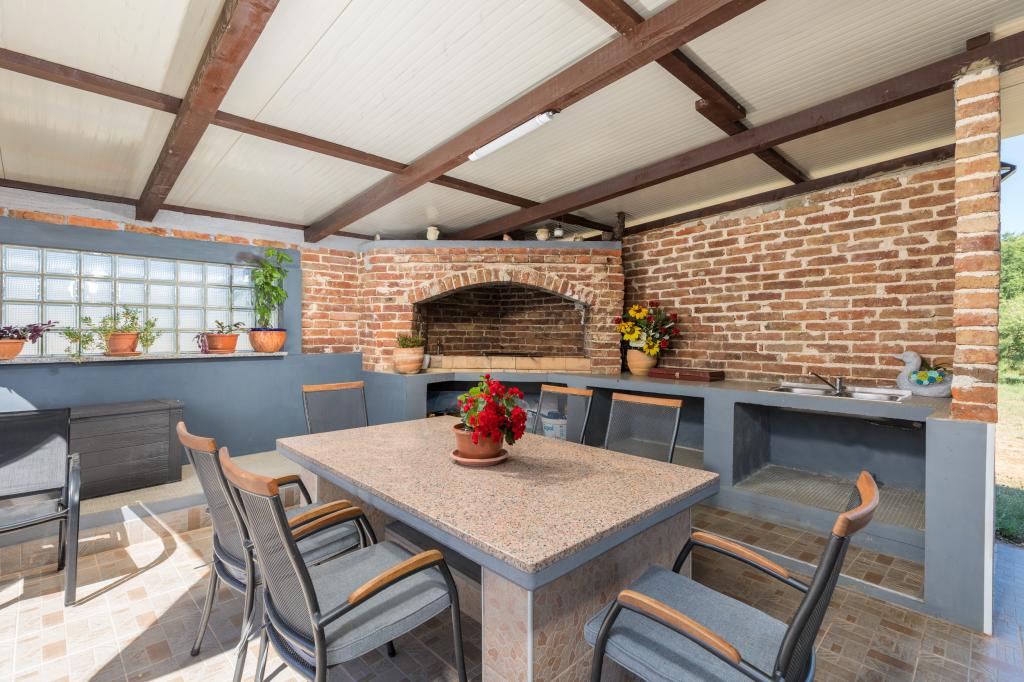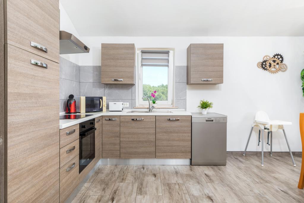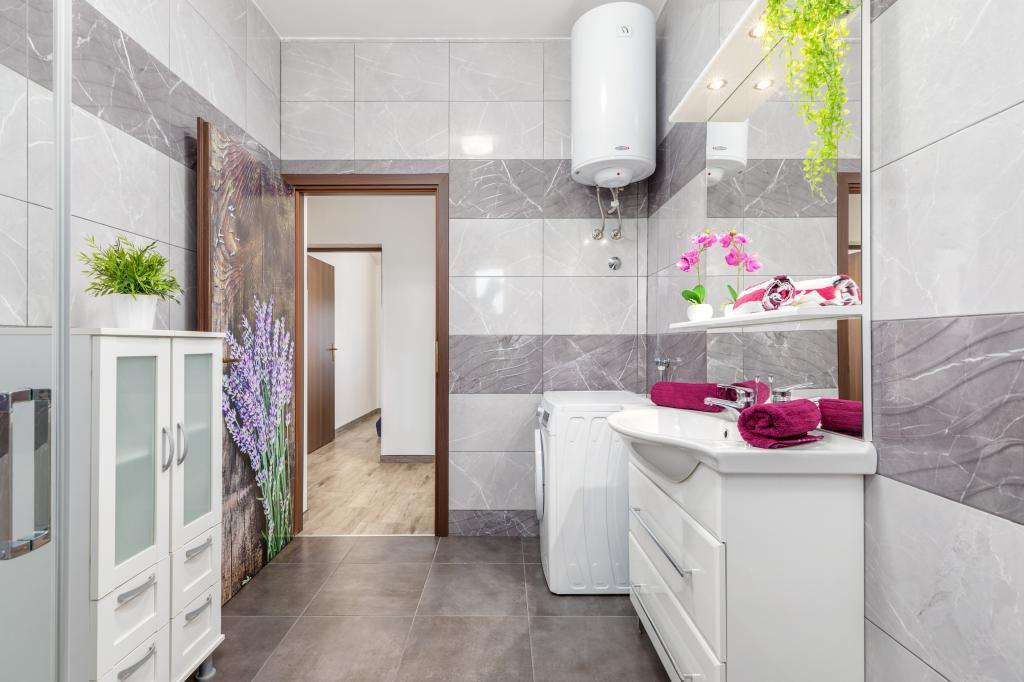 Zrelaksujcie się w nowo wybudowanym obiekcie tylko 8 km od centrum Puli i 10 km od pierwszej plaży. Spokojna okolica na skraju lasu, budząca się przy śpiewie ptaków. Mieszkanie na pierwszym piętrze posiada 3 sypialnie, łazienkę wyposażoną w pralkę i prysznic, kuchnię z pralką, jadalnię oraz salon. Zadaszony taras ze stołem jadalnym i meblami wypoczynkowymi, a na parterze grill z towarzyszącym wyposażeniem i dużym ogrodem. Wi-Fi, łóżeczko dla dziecka, karmnik, bezpłatny parking. Blisko plac zabaw i supermarket.