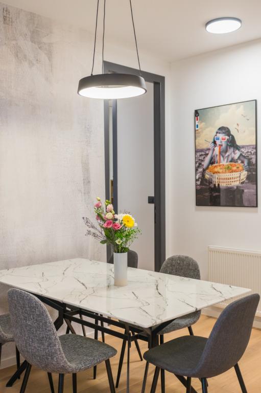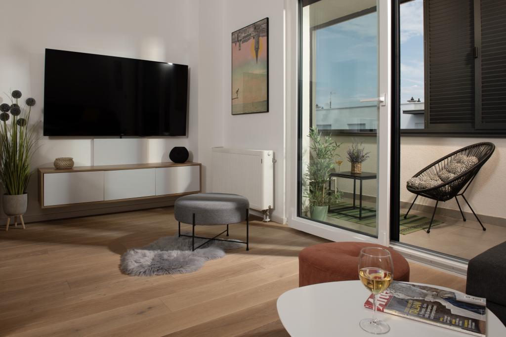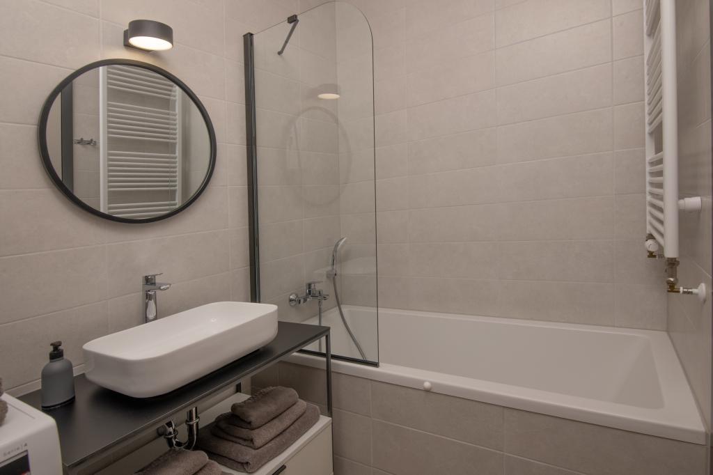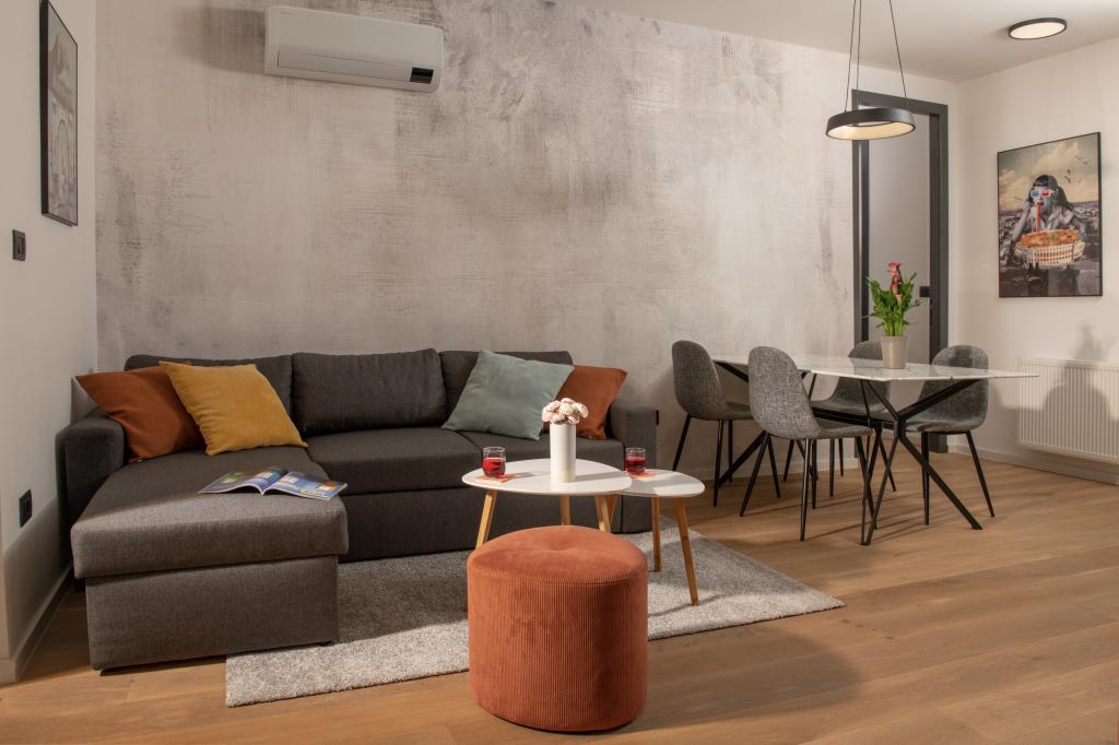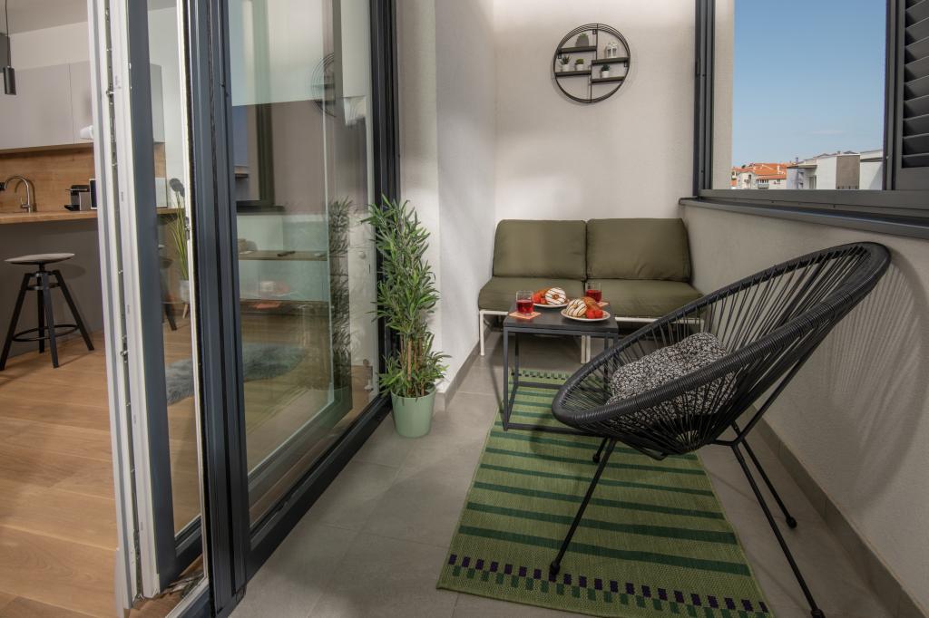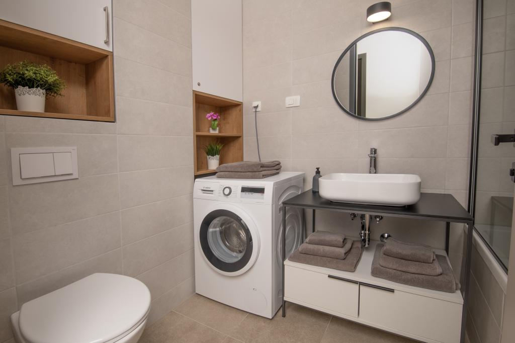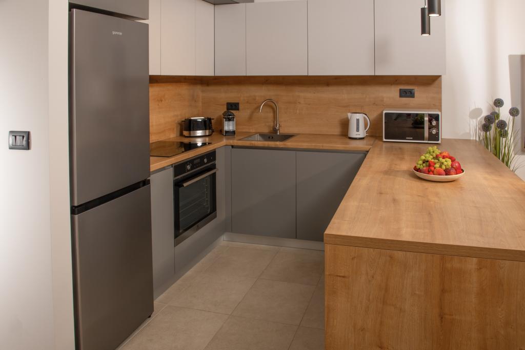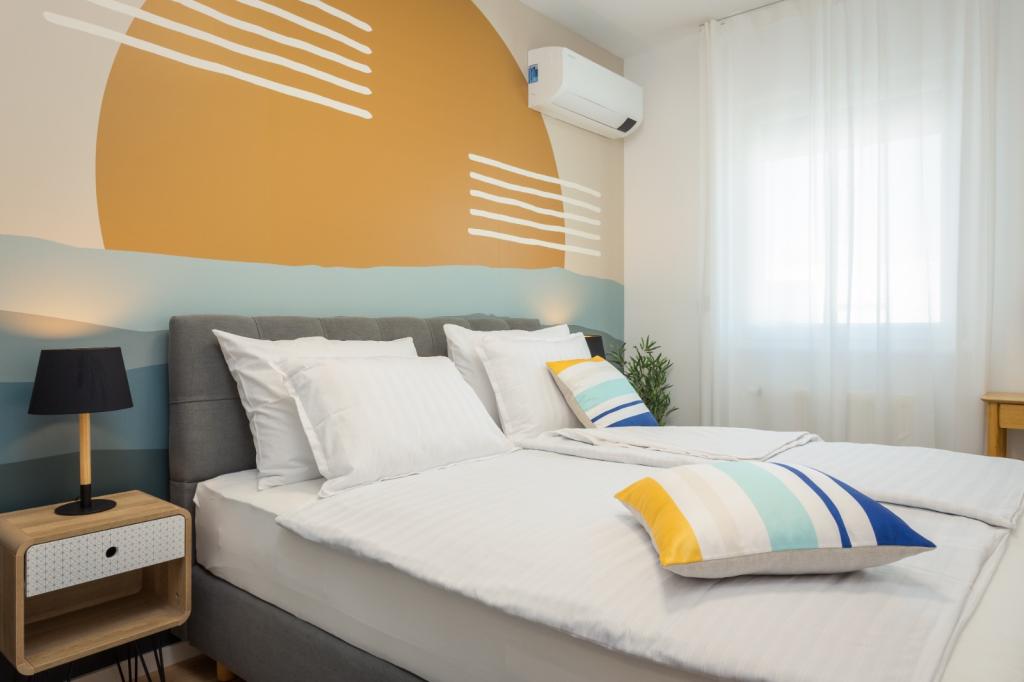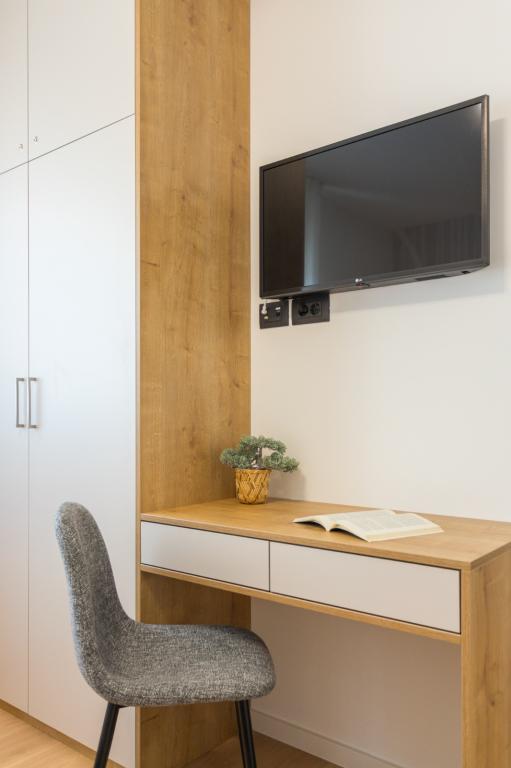 W pełni i nowocześnie wyposażony apartament w nowym budynku z prywatnym parkingiem. Mieszkanie składa się z trzech sypialni, salonu z dużym telewizorem, w pełni wyposażonej kuchni, dwóch łazienek oraz tarasu. W dwóch sypialniach znajdują się bardzo wygodne podwójne łóżka o wymiarach 180x200 cm, natomiast w trzeciej sypialni znajdują się dwa pojedyncze łóżka o wymiarach 90x200 cm. Meble wykonywane są na wymiar, a całe wyposażenie jest nowe. Wyróżniamy: pralkę, zmywarkę, piekarnik, dużą lodówkę z zamrażarką, ekspres do kawy Nespresso, kuchenkę mikrofalową. W kuchni znajdują się wszystkie sprzęty kuchenne, a także wszelkiego rodzaju naczynia, szklanki i sztućce. Mieszkanie zlokalizowane jest w spokojnej części miasta, blisko plaż i centrum miasta. Lotnisko jest bardzo blisko, zaledwie dziesięć minut jazdy samochodem, podobnie jak dworzec autobusowy.
