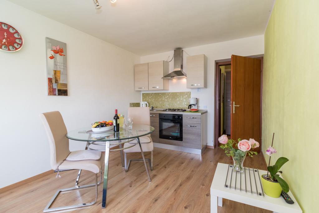 Apartament znajduje się w spokojnej części Puli w wiosce Stinjan i znajduje się w pobliżu nowo wyremontowanej plaży Hydro bazy i kempingu Brioni ex Puntižela. Znajduje się na pierwszym piętrze prywatnego domu, oddzielne wejście, klimatyzacja, WIFI. Miejsce parkingowe znajduje się na podwórku przed domem. W pobliżu około 200 m znajdują się mini markety i piekarnie, przystanek autobusowy do centrum miasta w odległości 300 m. Pizzeria, pizza taxi, grill znajdują się w pobliżu mieszkania Centra handlowe Plodine, Kaufland, Lidl, Konzum są około 4 -5 km. targ miejski i targ rybny ok. 7 km. Na plaży znajduje się bezpłatny duży parking oraz wiele dodatkowych udogodnień: siatkówka plażowa, sport i zabawa na morzu, boisko do koszykówki, joga, kurs nurkowania, wypożyczalnia łodzi oraz sprzęt taki jak leżaki, parasole, bary plażowe i fast food, tarasy z muzyka, animacje dla dzieci, outdoor fitness park .. W pobliżu organizowane są liczne wycieczki statkiem do Parku Narodowego Brijuni, chorwackie wyspy katamaranem, Venezia.