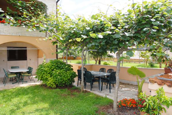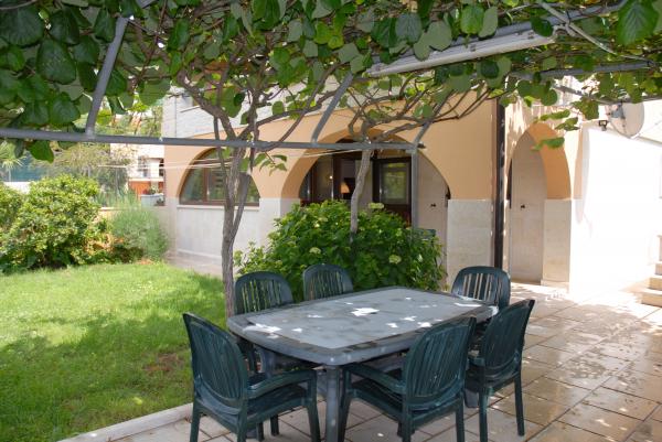 Mieszkanie na parterze z ogrodem i dwoma tarasami. W pełni wyposażone apartamenty. z dwoma pokojami dwuosobowymi oraz codziennej pracy z dwoma pojedynczymi łóżkami, oddzielnej kuchni i jadalni. Zadaszony taras i duży taras pod altanka kiwi. Grill na węgiel. Prywatny parking zacienione. Mieszkanie na parterze z ogrodem. Internet bezpłatnie. Możliwość korzystania z łodzi z kapitanem. Wędkowanie. W pobliżu korty tenisowe. Plaża, restauracja i morze 800m. Parking na plaży. Plaża urządzone.