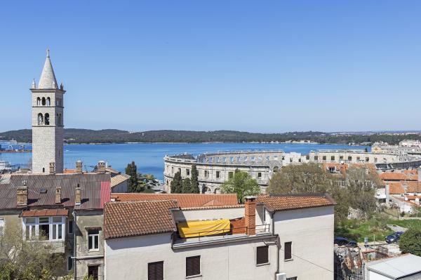 Apartament znajduje się przy cichej ulicy, 1 minutę spacerem do Amfiteatru i 5 minut spacerem do centrum, gdzie można przejść się przez podwójne drzwi, Muzeum Archeologiczne, Złotą Bramę, świątynię Augusta, rynek austro-węgierski i wszystko, co możesz zrobić bez użycia transport. Mieszkanie znajduje się na 4 piętrze z pięknym widokiem na morze, amfiteatr, zamek, żurawie latarni głównie z apartamentu oferuje spektakularny widok na całą Pula. Mieszkanie jest nowo umeblowane, znajduje się w budynku mieszkalnym z podwórkiem z miejscem parkingowym. Jest odpowiedni dla 4 osób (2 2) i składa się z jednej sypialni z podwójnym łóżkiem dla dwóch osób, pokój dzienny z rozkładaną sofą dla dorosłych i dzieci, kuchnia, TV, klimatyzacja, internet wi-fi, łazienka z prysznicem, pralka. Właściciel nie mieszka w domu.