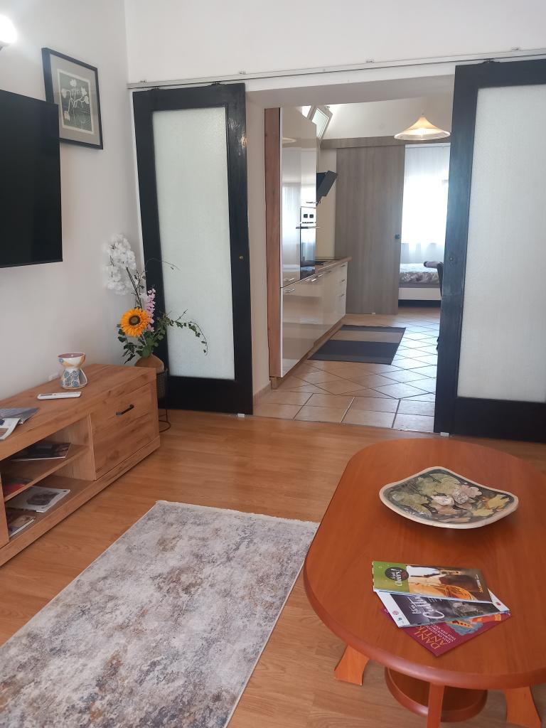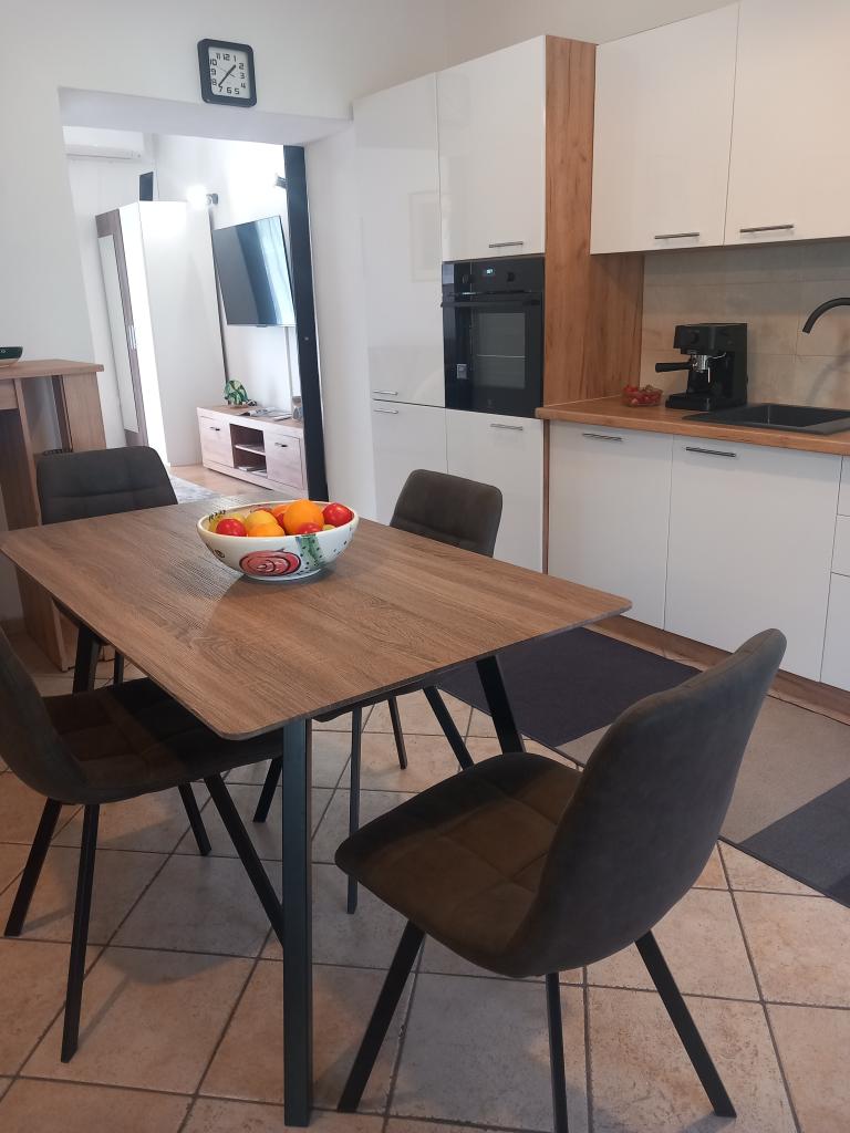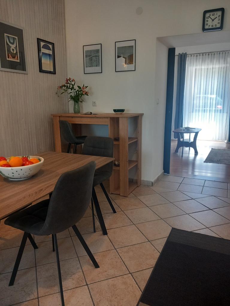 W pełni i nowocześnie wyposażony apartament na parterze domu rodzinnego w spokojnej uliczce niedaleko amfiteatru i centrum /do 10 min. spacerem/. Łóżko w sypialni o wymiarach 180 x 200 cm. W salonie znajduje się rozkładana sofa o wymiarach 140 x 200 cm. Dostęp do tarasu otoczonego zielenią. Bezpłatny parking przed domem. Bezpłatne wi-fi. Do miejskich plaż można dojechać samochodem w 10 min.
