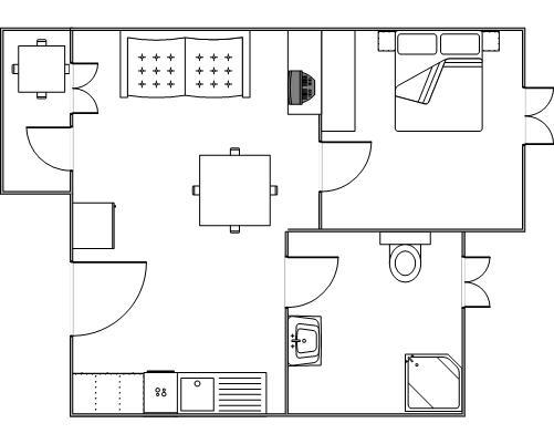 Apartament dla dwóch osób z dwoma dostawkami (40 m2)