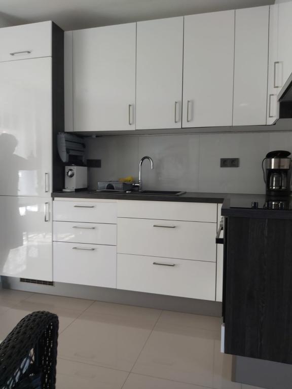 Nowe i nowocześnie wyposażone apartamenty w spokojnej okolicy, położone w trzecim rzędzie od morza; Obiekt położony jest 2 minuty spacerem od centrum i 5 minut spacerem od plaży. Wiem, że wzdłuż plaży znajdują się restauracje i inne punkty usługowe dla gości. Aktywności sportowe można uprawiać korzystając ze sprzętu dostępnego bezpośrednio przy plaży. A także gadżety dla dzieci do zabawy i zabawy. Uwaga. Plaże są oświetlone nocą, a goście mogą zrelaksować się w barze nad morzem.