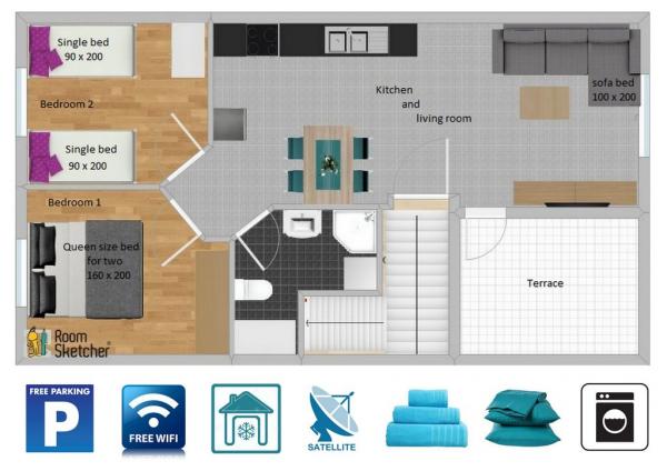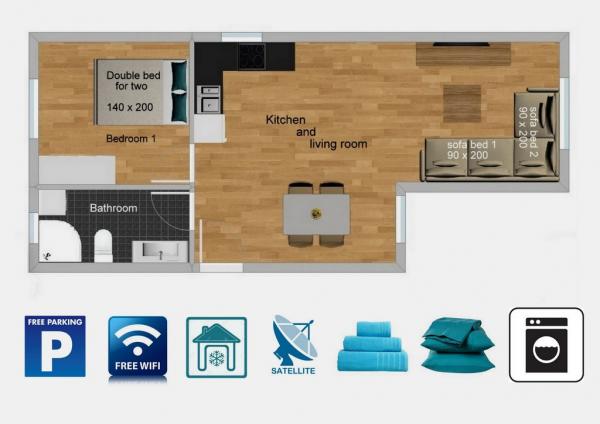 Apartament dla dwóch osób z dwoma dostawkami (45 m2)