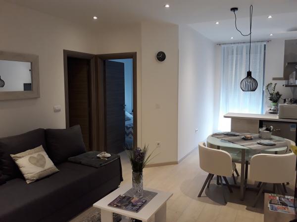 APARTAMENT LOVE - PULA 40M2 - 1. PODŁOGA ŻYCIE APARTAMENTOWE - PULA 40 M2 - 2. PODŁOGA W centrum Puli, z parkingiem i garażem. 200 m (sklepy, targ miejski, rybacy, piekarnie) Piękne plaże miejskie to 2 km (autobus miejski) lub samochód 5 min. Miasto oferuje piękne spacery restauracji, sklepów, zwiedzanie, muzea, imprezy letnie. Apartamenty składają się z pokoju, kuchni z salonem, łazienki, połączonej z windą z garażu. W pełni wyposażony sprzęt kuchenny (naczynia, czajnik, kuchenka mikrofalowa) pościel, ręczniki, żelazko.