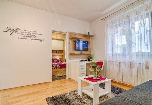 Opłata jest wliczone w cenę.Apartament LOVE - PULA W centrum Puli. Stylowy, nowy, luksusowy, 40m2 apartament, piękny widok na miasto. Apartament w pełni wyposażona kuchnia, sypialnia, klimatyzacja, WIFI, TV-SAT. Oferuje wszystkie udogodnienia w mieście spacery, restauracje, bary, sklepy. ŻYCIE APARTAMENTOWE - PULA Nowoczesny apartament, 40 m2, wyposażony, dla max. 3 osoby. Oferuje wszystkie udogodnienia miasta, imprezy, spacery, zwiedzanie, wycieczki. Piękne plaże, spacery, bary na plaży. Amfiteatr, Kaštel, Forum. Niezapomniane wakacje i piękne zdjęcia z Puli.