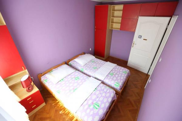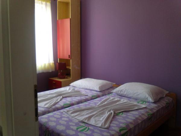 Nowszy dom z 3 apartamenty Sasha stoi na końcu drogi, w mieszkalnej i turystycznej obszaru Brijuni. Sklepy, restauracja, plaża piaszczysta około 400 m, centrum 1 km, Pula 4 km. Ogrodzony, około 500 mkw ziemi z roślin śródziemnomorskich, drzew kiwi, kwiatami i krzewami. Aby udostępnić w ogrodzie: 2 leżaki, taras z drewnianym stole / drewniane ławki, grill. Parkowanie na ulicy w pobliżu domu. Balkon (około 17 mkw) z widokiem na morze i mebli. Podłogi. Telewizja satelitarna. Olej centralne ogrzewanie. Pralka przez właściciela (płatności). Uwaga: właściciel mieszka na ziemi. Lokalne opłaty za usługi: opłata klimatyczna. Pościel do mycia (co 7 dni włącznie) .we oferują jeden mały ręcznik spadł osobowych. Przynieś ovelike ręczniki. Kaucja 150 € łóżeczko dla dziecka 20 € za pokój (wniosek). Zwierzęta nie są akceptowane.