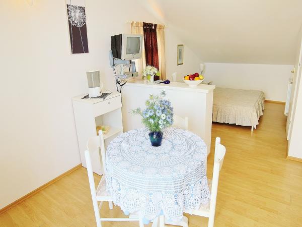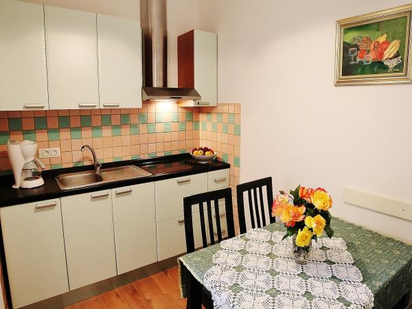 Mieszkaliśmy w sierpniu 2024 w apartamencie nr 40153. Ważne było dla mnie aby sypialnia była oddzielona od pozostałych pomieszczeń. W apartamencie znajduje się mała kuchnia z 2 płytami grzewczymi i lodówką. Talerze, łyżki, widelce, szklanki... wszystko jest dostępne w wystarczającej ilości. Łóżko jest super wygodne. Co było dla mnie pozytywnym zaskoczeniem. Łazienka jest mała, ale ma wszystko, czego potrzebujesz, nawet ręczniki do rąk, twarzy i prysznica. Mały, ale wystarczający balkon ma jeden stół i dwa krzesła. Z balkonu widać kawałek morza. Parking znajduje się obok budynku, w cieniu. Do placu można dojść w 10 minut. W pobliżu znajdują się sklepy i pizzerie. Gospodyni jest bardzo miła i przyjęła nas bardzo gościnnie. Podsumowując, spędziliśmy bardzo miło czas. Korzystając z okazji, chciałbym podziękować za gościnę i życzyć wszystkiego najlepszego.