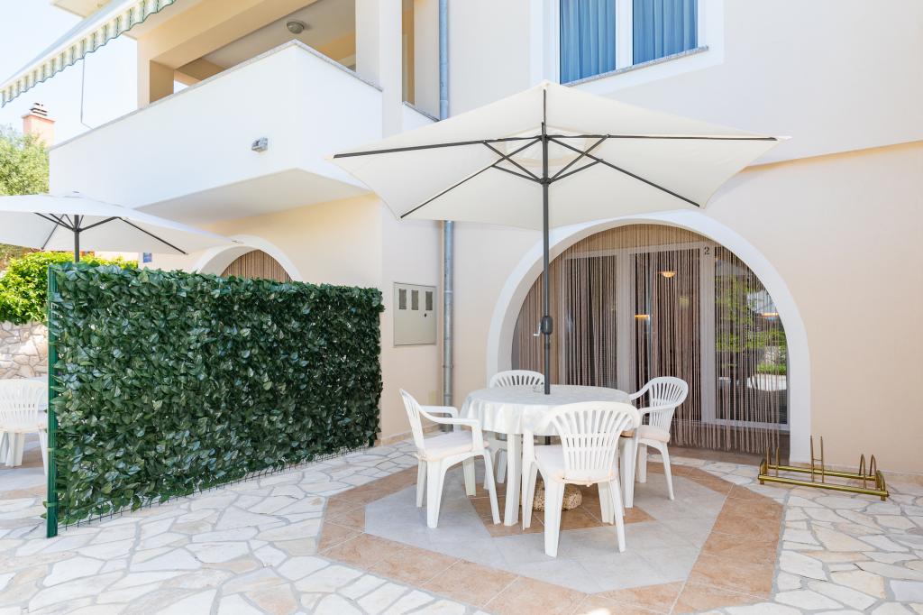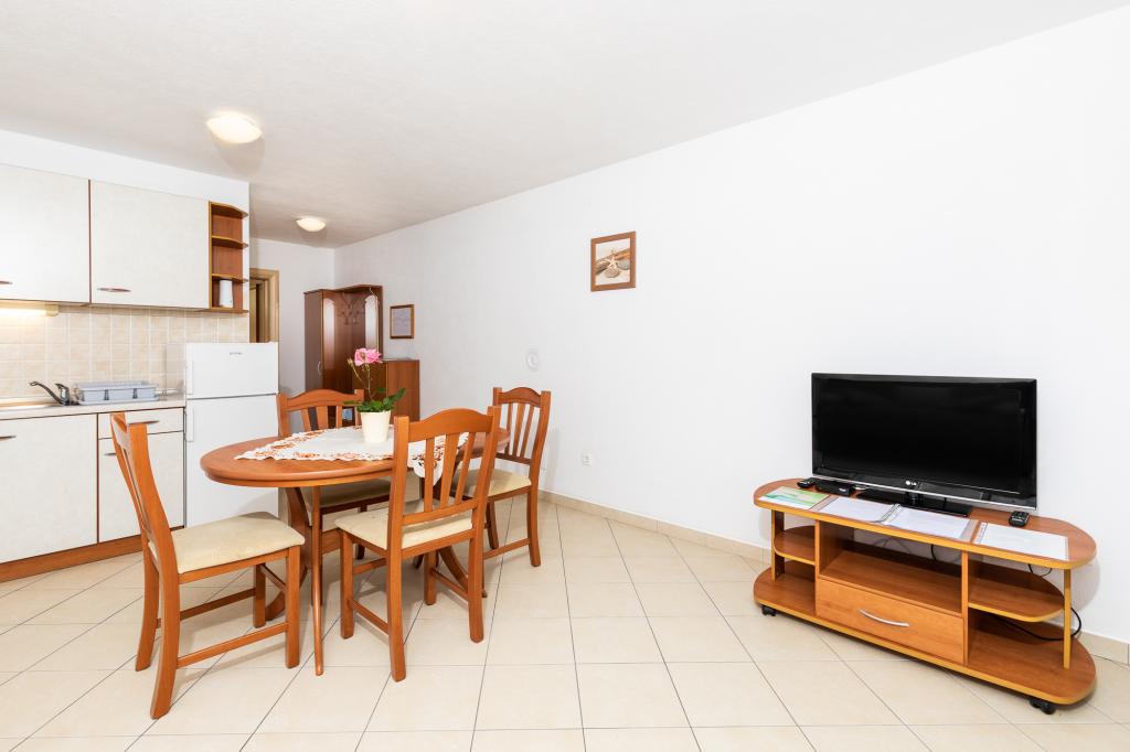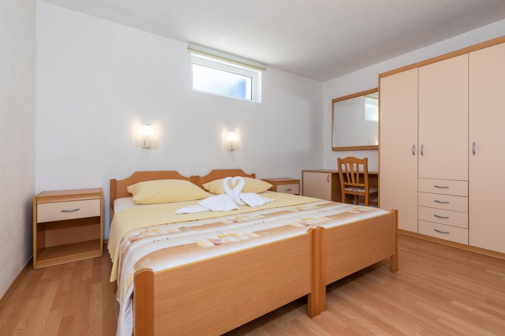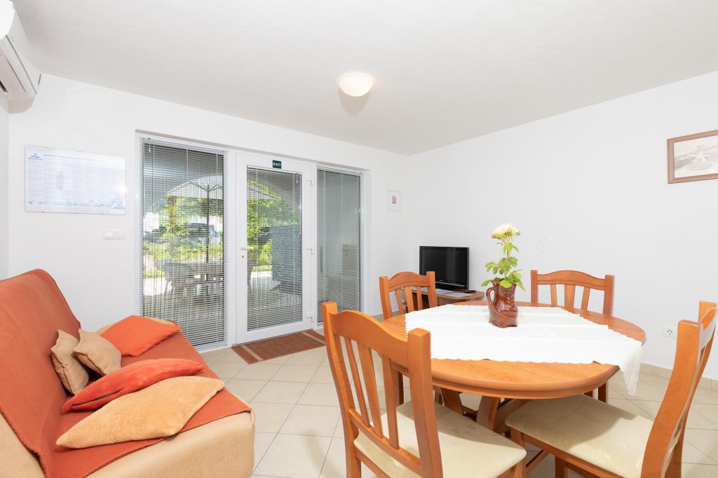 KwaterAby dokonać rezerwacji należy wpłacić zaliczkę w wysokości 100 € za pośrednictwem banku (IBAN), a pozostała część rachunku płatna gotówką po przyjeździe. Przyjazd do apartamentu możliwy jest po godzinie 14:00, a wyjazd do godziny 10:00. Podstawowa cena za apartament dotyczy pobytu 2 osób. Za każdą dodatkową osobę na dodatkowym łóżku cena wzrasta o 12 €/dzień (1 maja – 14 lipca, 21 sierpnia – 30 września) lub 15 €/dzień (15 lipca – 20 sierpnia). W każdym apartamencie znajduje się dodatkowe łóżko dla 2 osób. Dzieci do lat 3 – pobyt bezpłatny, jeśli nie korzystają z dodatkowego łóżka. Pobyt do 3 nocy zwiększa cenę usługi o 30%. Opłata klimatyczna jest wliczona w cenę.