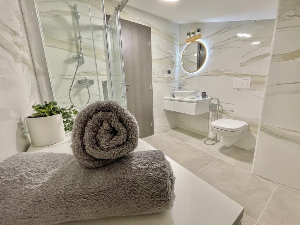 Świetne, duże, bardzo czyste mieszkanie. Lokalizacja jest świetna, na cichym końcu miasta ze wspaniałym widokiem na morze i tylko kilka 100 m w dół ulicy do żwirowo-piaszczystej plaży odpowiedniej dla dzieci lub wzdłuż nadmorskiej promenady do centrum miasta. Właściciele są naprawdę mili, gościnni i pomocni. Na pewno kiedyś tu wrócimy.