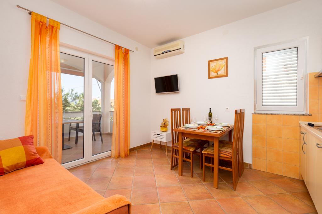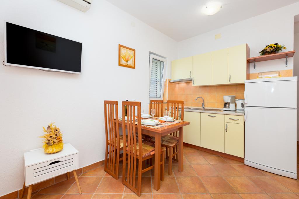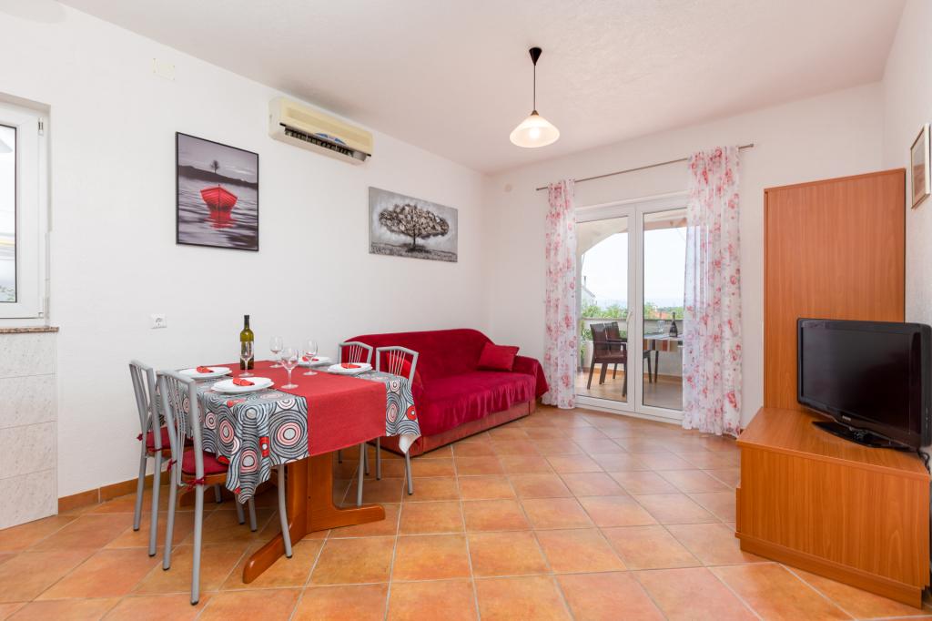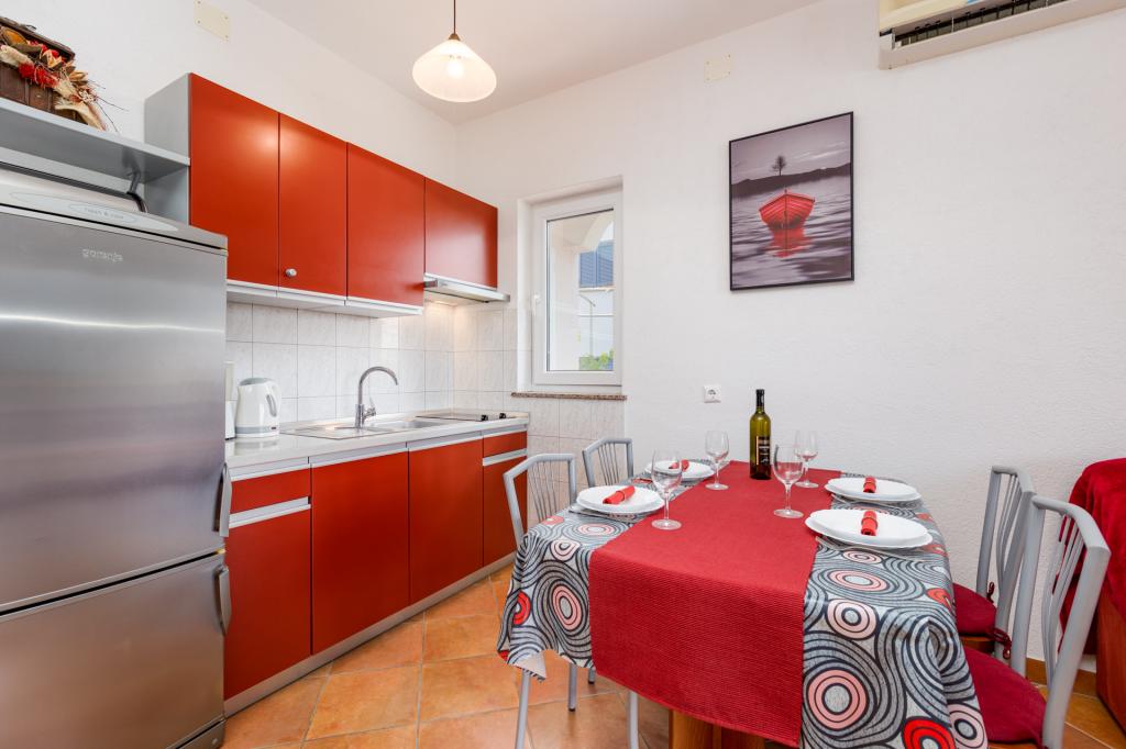 W małej nadmorskiej miejscowości Punat, w pięknym otoczeniu drzew oliwnych i drzew figowych, znajduje się nasz dom rodzinny z dwóch nowoczesnych apartamentów na parterze. Każdy apartament posiada dwie oddzielne sypialnie, aby pomieścić cztery osoby, łazienka z prysznicem, kuchnia i pokój dzienny z rozkładaną sofą dla dwóch osób. Salon posiada dostęp do przestronnej zadaszonym tarasem ze stołem i krzesłami. Apartamenty wyposażone są w klimatyzację, SAT / TV, pościel, zmywarka, lodówka z zamrażarką, ekspres do kawy, naczynia i inne przybory kuchenne. Na samochodzie parkingu w naszej stoczni. Witamy!