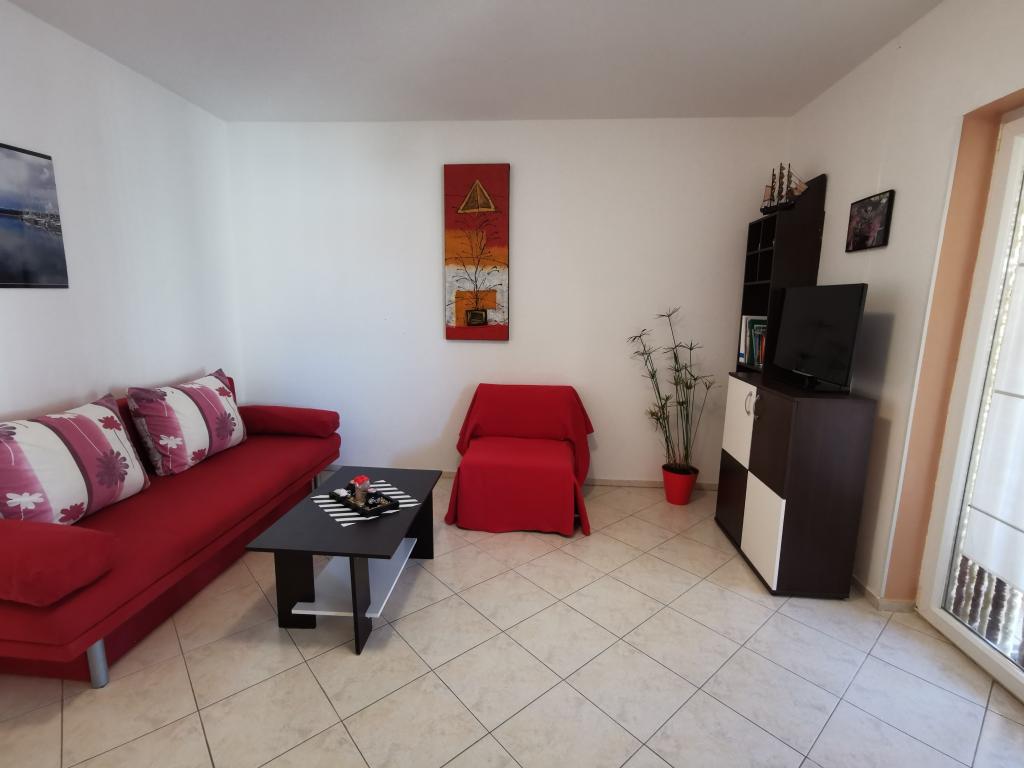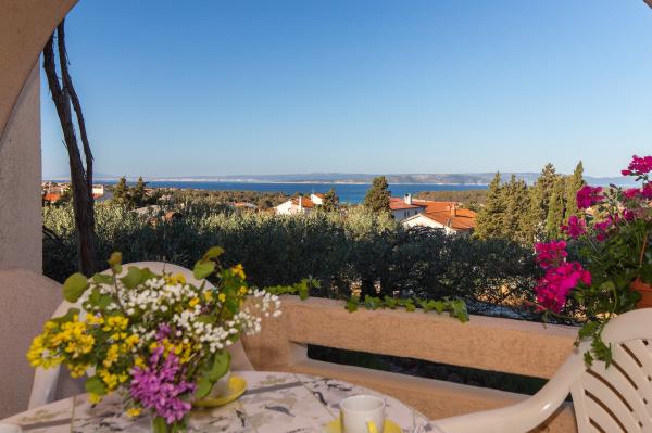 Apartamenty znajdują się w spokojnej części miasta z pięknym widokiem na morze, parking w budynku. W pełni wyposażony apartament z tarasem, dużym ogrodem botanicznym, w którym znajduje się grill z miejscami do siedzenia, parasolami i leżakami do wypoczynku przy basenie. Apartamenty zarejestrowane tylko dla trzech osób. Podczas pobytu można korzystać z: ogólnodostępnego basenu (słodka woda 6 x 3,5 m, głębokość 1,5 m).Gospodarz będzie w domu.
