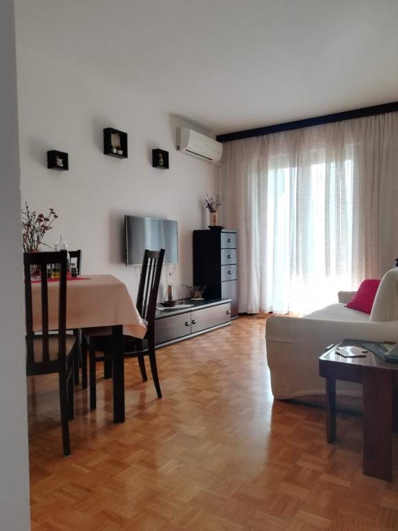 Spędziliśmy 3 dni u przemiłej Pani Dragany w dwie rodziny (4 osoby dorosłe i dwójka dzieci). Otrzymaliśmy 2 komplety kluczy i miły komplement. Wszystko było w dobrym stanie, sztućców i innych sprzętów kuchennych było pod dostatkiem, w tym ekspres do kawy, garnki i patelnie (oczywiście porysowane, jak wszędzie, bo są w dobrym stanie tylko do pierwszego użycia przez nieświadomych turystów, więc polecam przynosisz swoje). Klimatyzator działał dobrze. Korzystaliśmy także z pralki i Smart TV (nie tylko lokalnej). Tylko Wi-Fi czasami miało słaby sygnał. Było czysto, było mnóstwo ręczników i spaliśmy świetnie. Można jeść na balkonie lub na zewnątrz. 8 minut spacerem do plaży i 8 minut spacerem do większego sklepu. Kontakt przed i po rezerwacji był szybki i łatwy. Gorąco polecam!