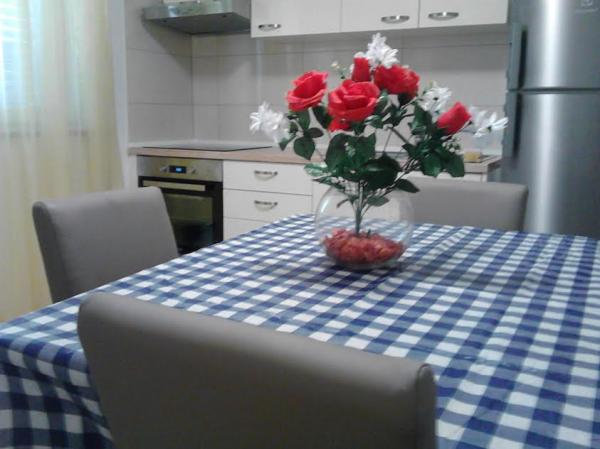 Punat apartamenty dla 4 lub 5 osób KRK-dom z dwoma apartamentami w centrum. Mieszkanie na parterze: kuchnia, jadalnia i pokój dzienny oraz łazienka (z wanną), sypialnia z podwójnym łóżkiem. Duży taras. W salonie znajduje się rozkładana sofa. Dla 4 osób. MIESZKANIE NA PIĘTRZE: kuchnia z jadalnią i pokojem dziennym, sypialnia z podwójnym i pojedynczym łóżkiem, łazienki (prysznice z wanną), balkon - taras 10 m2, mały balkon 2 m2. W salonie znajduje się rozkładana sofa. Dla 5 osób. miejsce parkingowe dla 3 samochodów, rowerów możliwość garażu. Wspólny grill na parterze. Dom został całkowicie odnowiony w 2015 roku. To wszystko jest nowe. Począwszy od elementów konstrukcyjnych mebli. Altanka w ogrodzie, aby zapisać swój rower lub podobnego sprzętu.