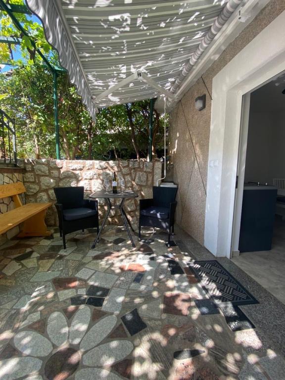 Studio otoczone jest zielenią i stanowi prawdziwą oazę spokoju: śródziemnomorskie kwiaty, winorośle, drzewa oliwne... Byłam zachwycona figami i śliwkami, które sama zebrałam i zjadłam, a w ogrodzie obok domu rosną również pomidory, ogórki i cukinia – wszystko można zbierać i spożywać. Ogród dla dziesięciu osób! Studio jest w sam raz dla dwóch osób i ma wszystko, czego potrzeba. Wszystko jest bardzo czyste i schludne, prawdopodobnie wszystko jest nowe. Łóżko jest bardzo wygodne i przyjemnie się w nim śpi. Samochód można zaparkować na podwórku. Właściciele są niezwykle mili, zaprosili mnie na kolację, którą przygotowali na grillu przy basenie. Basen jest dostępny dla gości studia i dużego apartamentu i ma jacuzzi, w którym można pływać o każdej porze dnia. Punat oferuje wiele letnich wydarzeń, więc ma bogate życie nocne. Uwielbiałam Beat on the Sea, a około dwudziestu minut stąd znajduje się klub Diamond dla tych, którzy szukają nieco bardziej intensywnej zabawy. Plaża znajduje się kilka minut spacerem od domu, ale właściciele pokazali mi inną, nieco dalej, która jest piękna, cichsza i piękniejsza, po prostu dla przyjemności. Ogólnie jestem zachwycona tym obiektem, zielenią, spokojem, życiem nocnym i wspaniałymi właścicielami! Polecam!