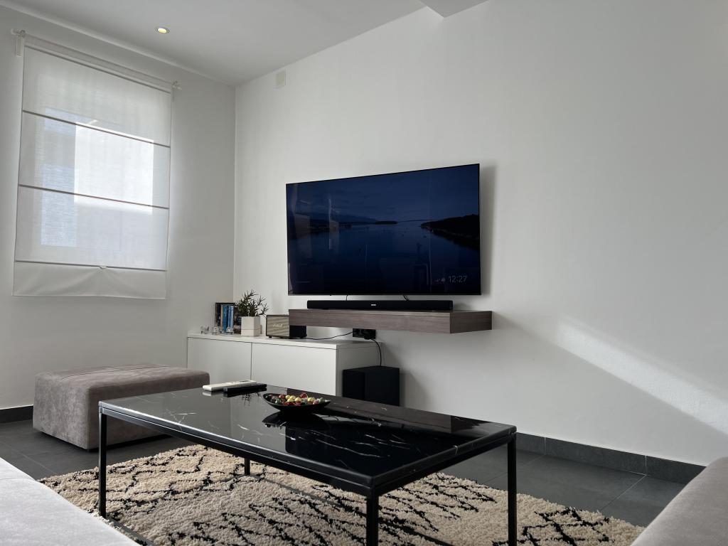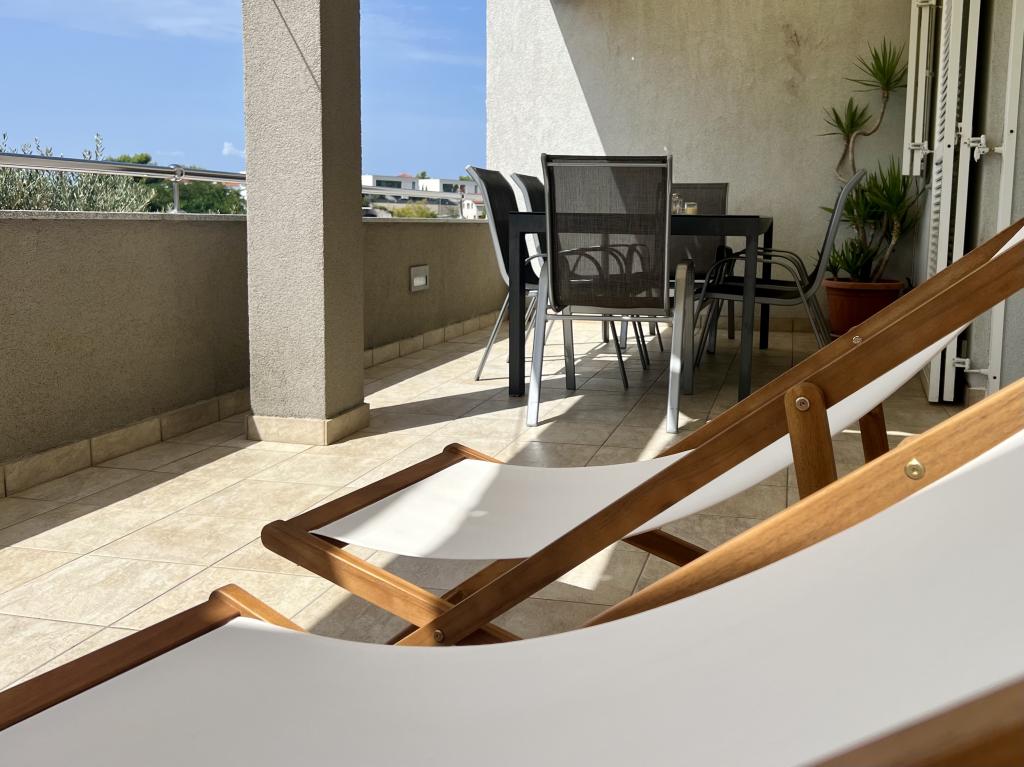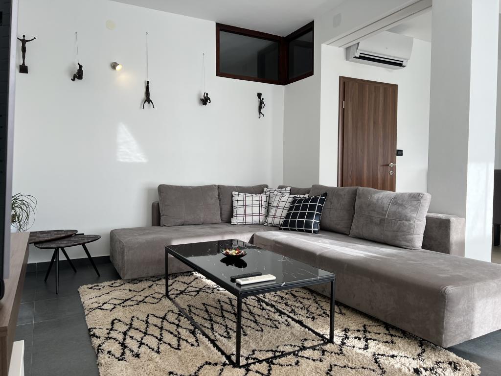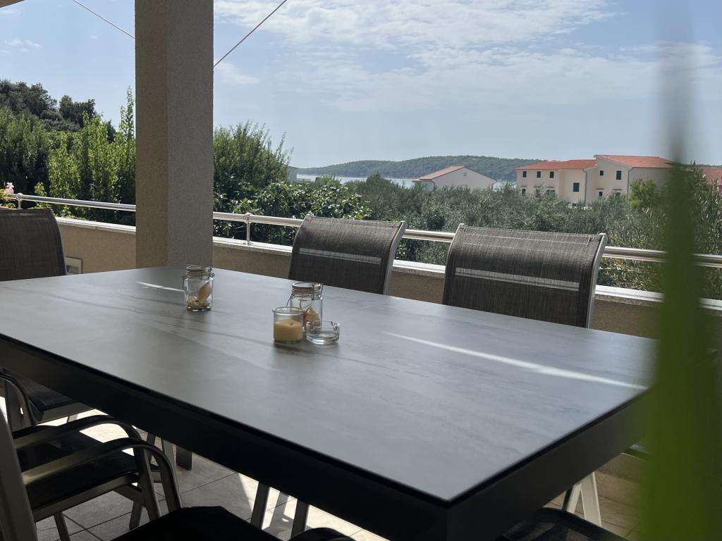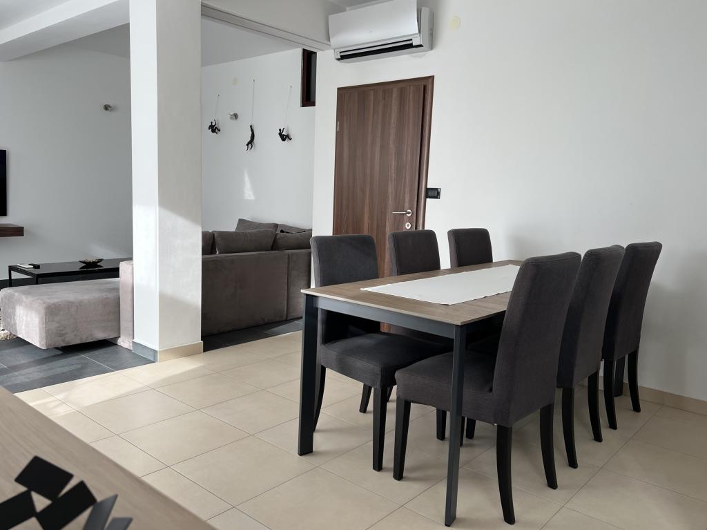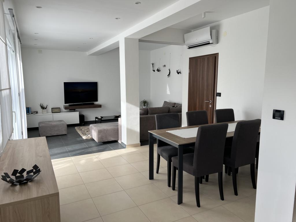 Nowoczesne, przestronne mieszkanie rodzinne. W pełni umeblowane w wysokim standardzie. Z kuchnią, jadalnią, salonem, telewizorem, WiFi i częścią wypoczynkową na świeżym powietrzu z widokiem na gaj oliwny i morze. Idealne na śniadanie lub do delektowania się wieczorem.