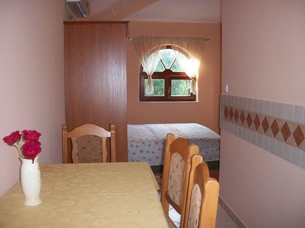 Witamy na wyspie Rab, pełnej różnorodności, o łagodnym śródziemnomorskim klimacie, który oferuje wiele możliwości idealnego wypoczynku, nie tylko latem, ale także wiosną i jesienią. Dom położony jest w cichym miejscu, z widokiem na morze, otoczony dużą ilością zieleni w gaju oliwnym. Jest to idealne miejsce dla osób ceniących spokój i prywatność, a także dla osób lubiących aktywnie spędzać urlop. Oprócz pływania i opalania można uprawiać turystykę pieszą, spacerować po lesie, jeździć na rowerze... W domu znajdują się dwa apartamenty typu studio z osobnymi wejściami. Jeden o powierzchni 28 m2 A1 (2 + 1 dostawka) z większym tarasem na parterze i drugi o powierzchni 37 m2 (2 + 3 dostawki) na pierwszym piętrze z balkonem. Odległość od plaży wynosi 1500 m, około 5 minut jazdy samochodem.